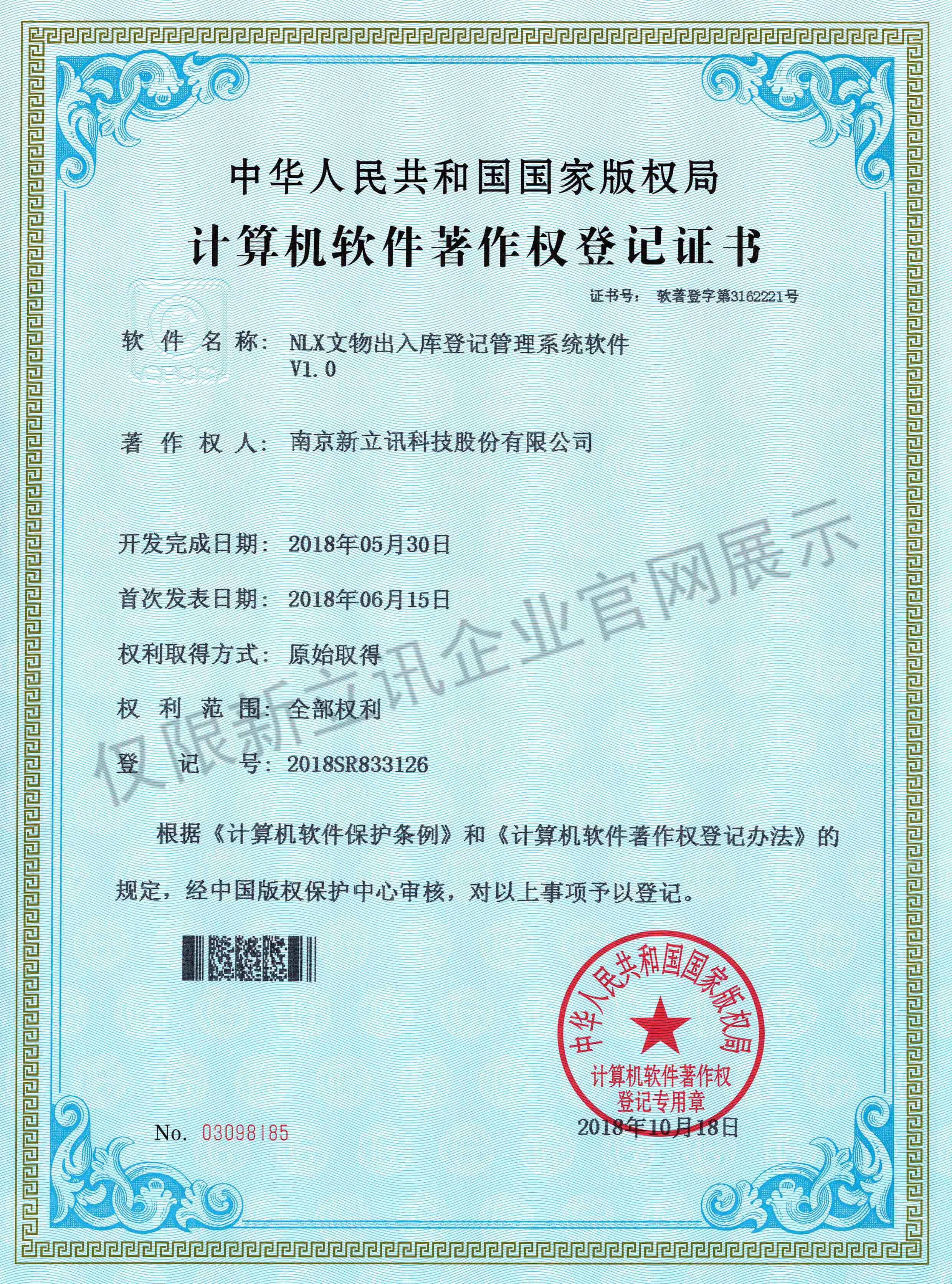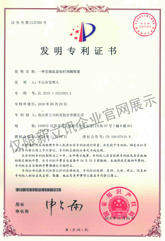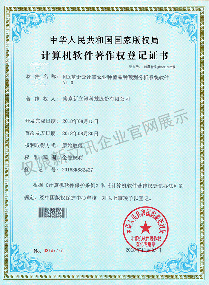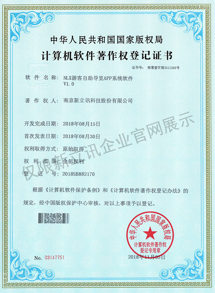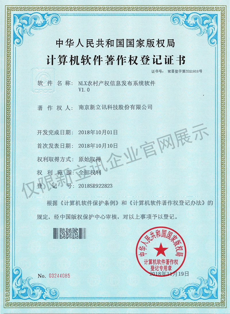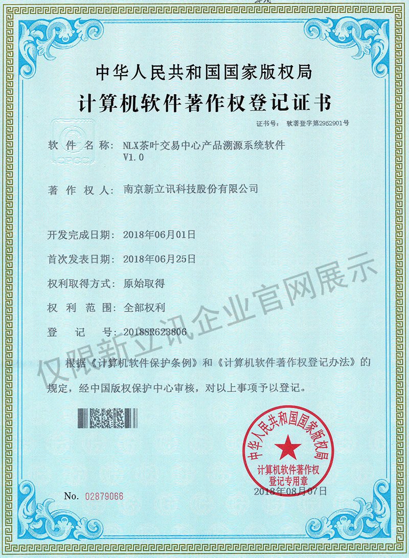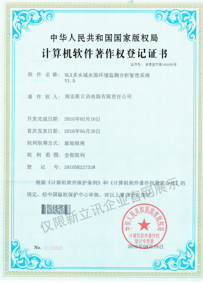 • 2016-07-20新立訊軟件著作權證書--NLX射頻門禁考勤管理系統V1.0查看