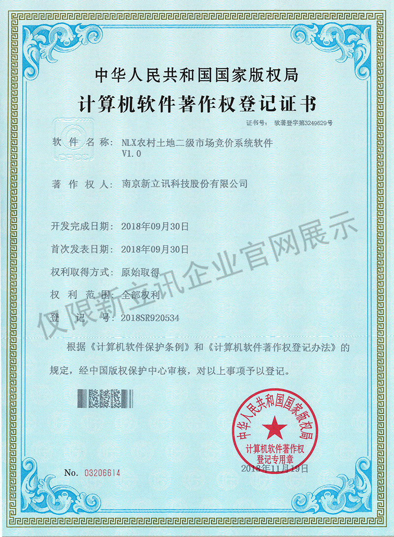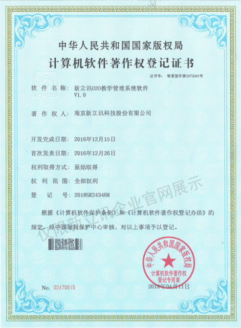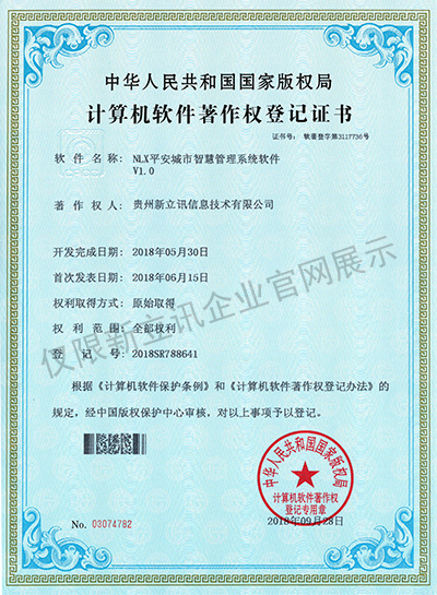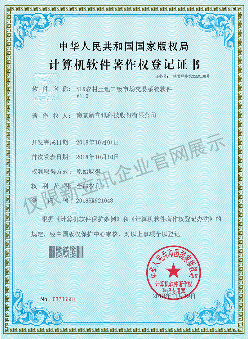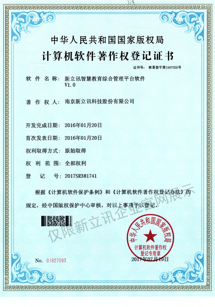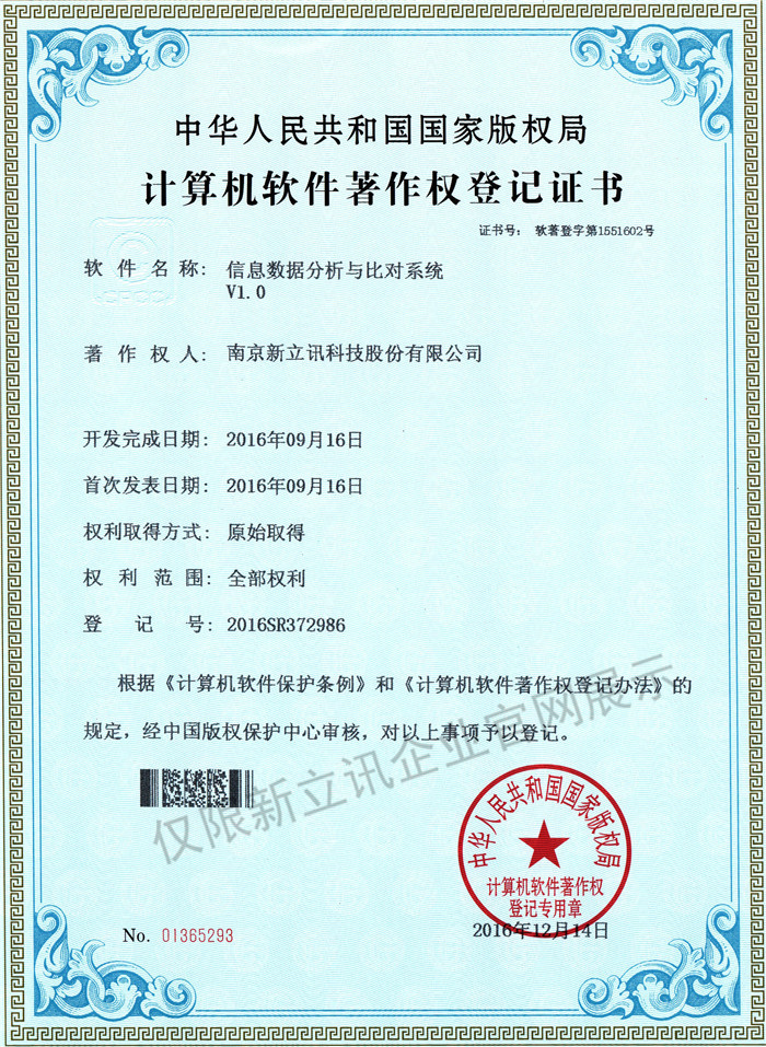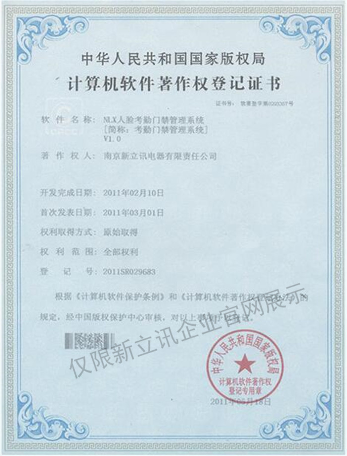 • 2016-07-20新立訊軟件著作權證書--NLX人臉考勤門禁管理系統V1.0查看