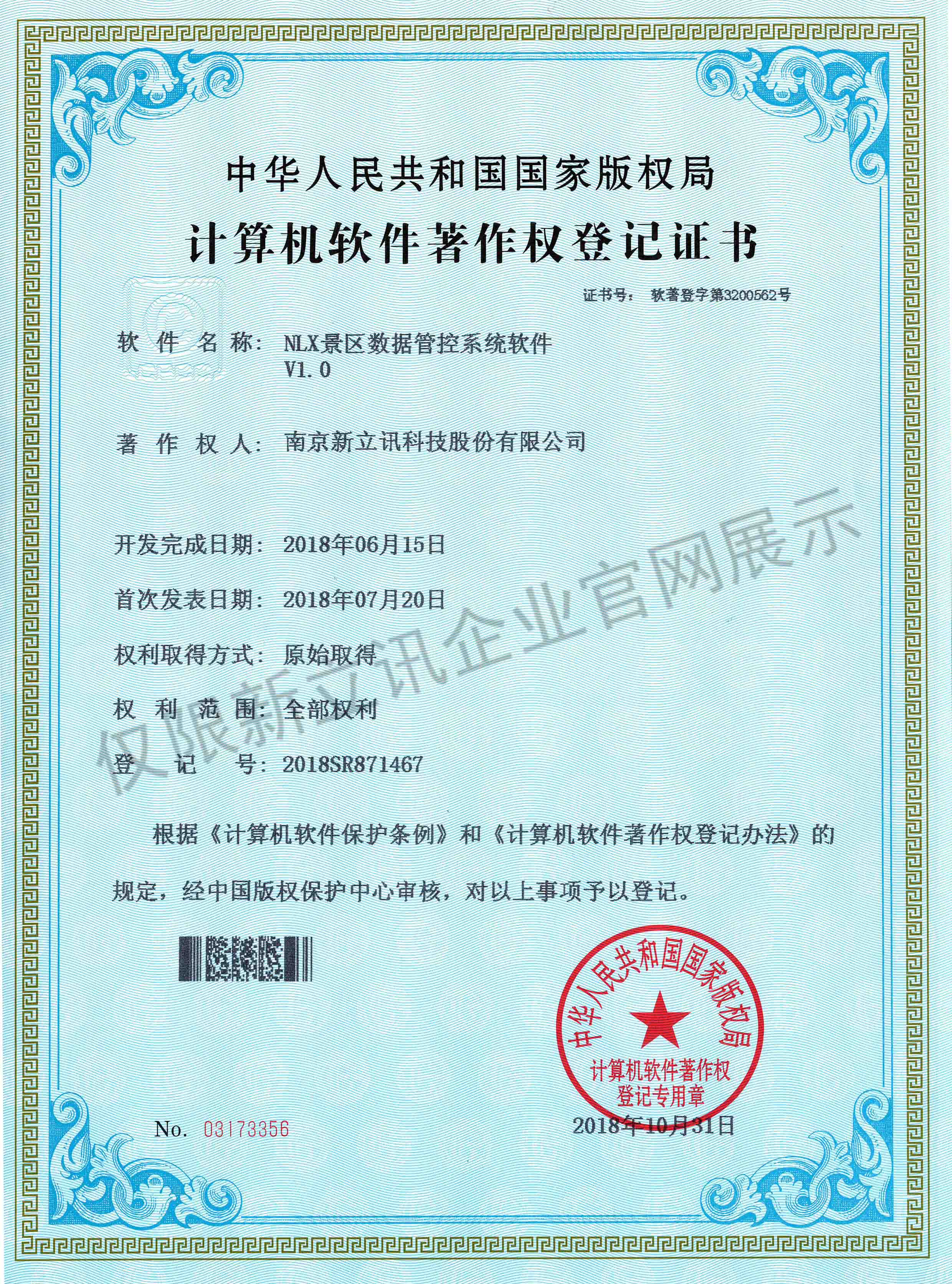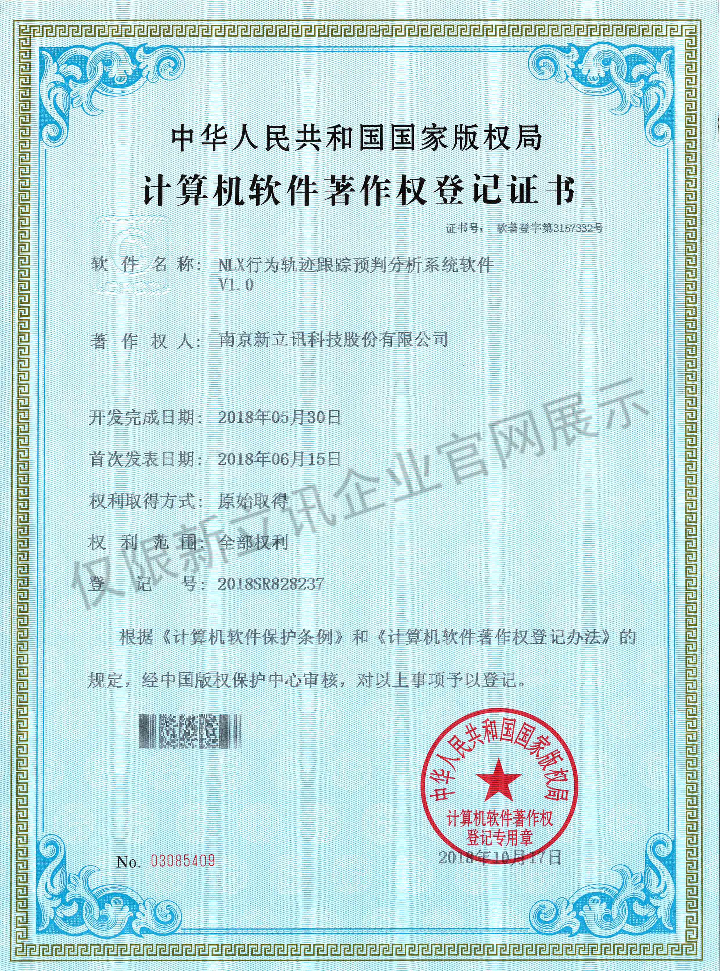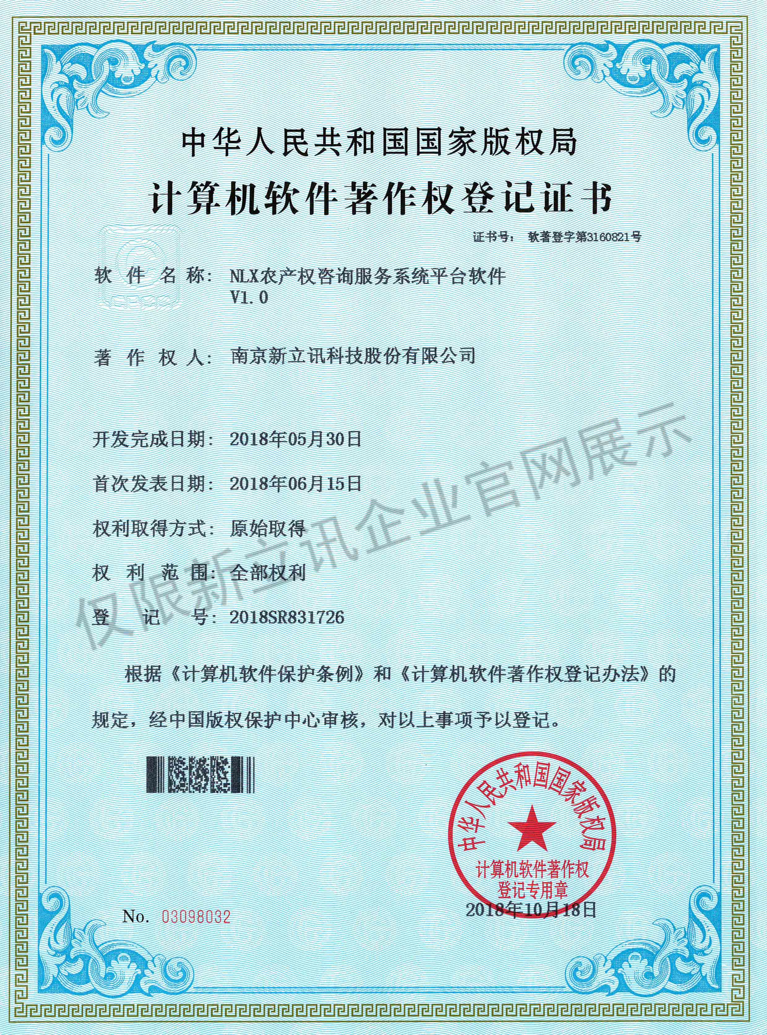 • 2016-07-20新立訊軟件著作權證書--NLX人臉考勤門禁管理系統V1.0查看