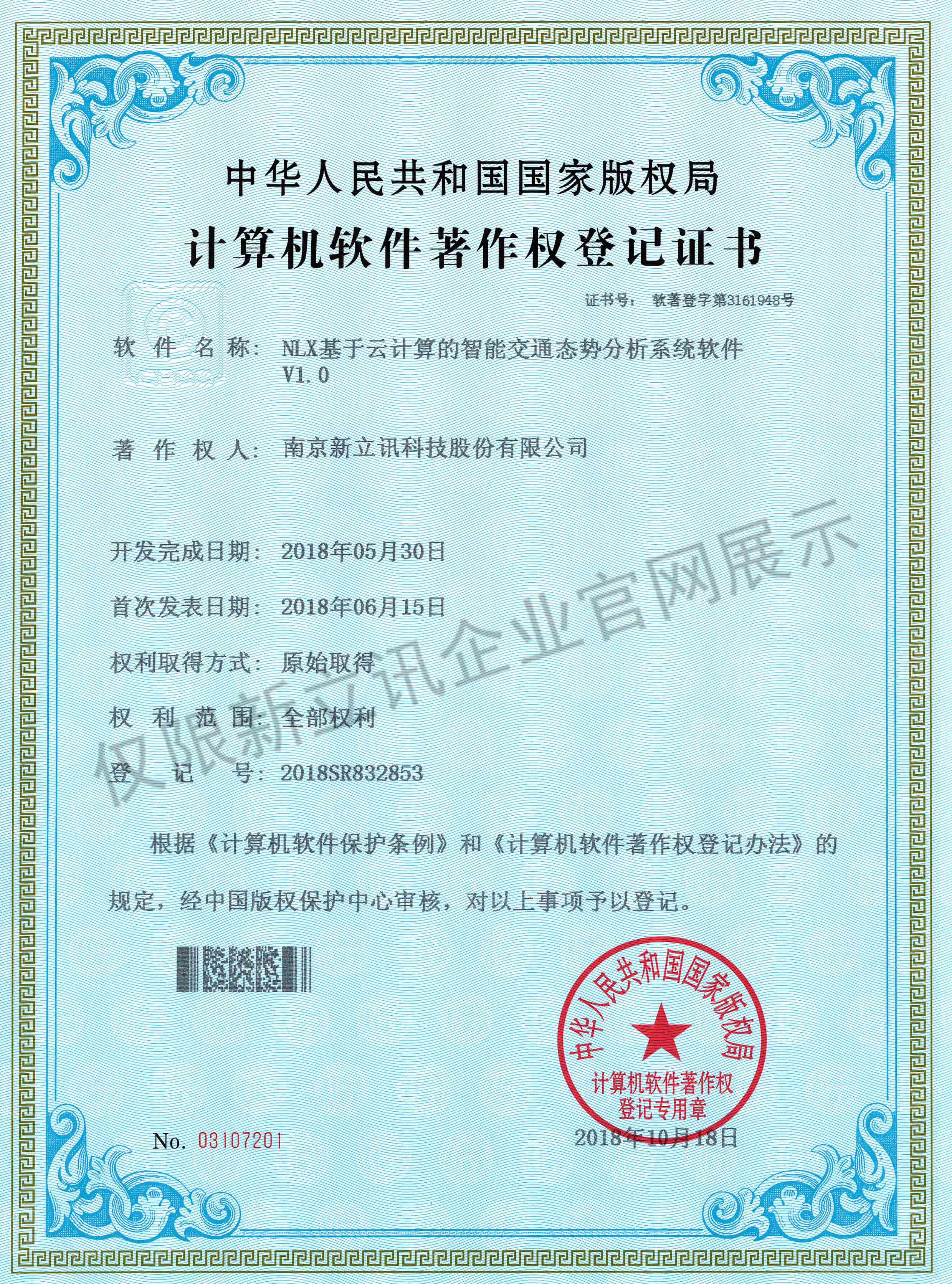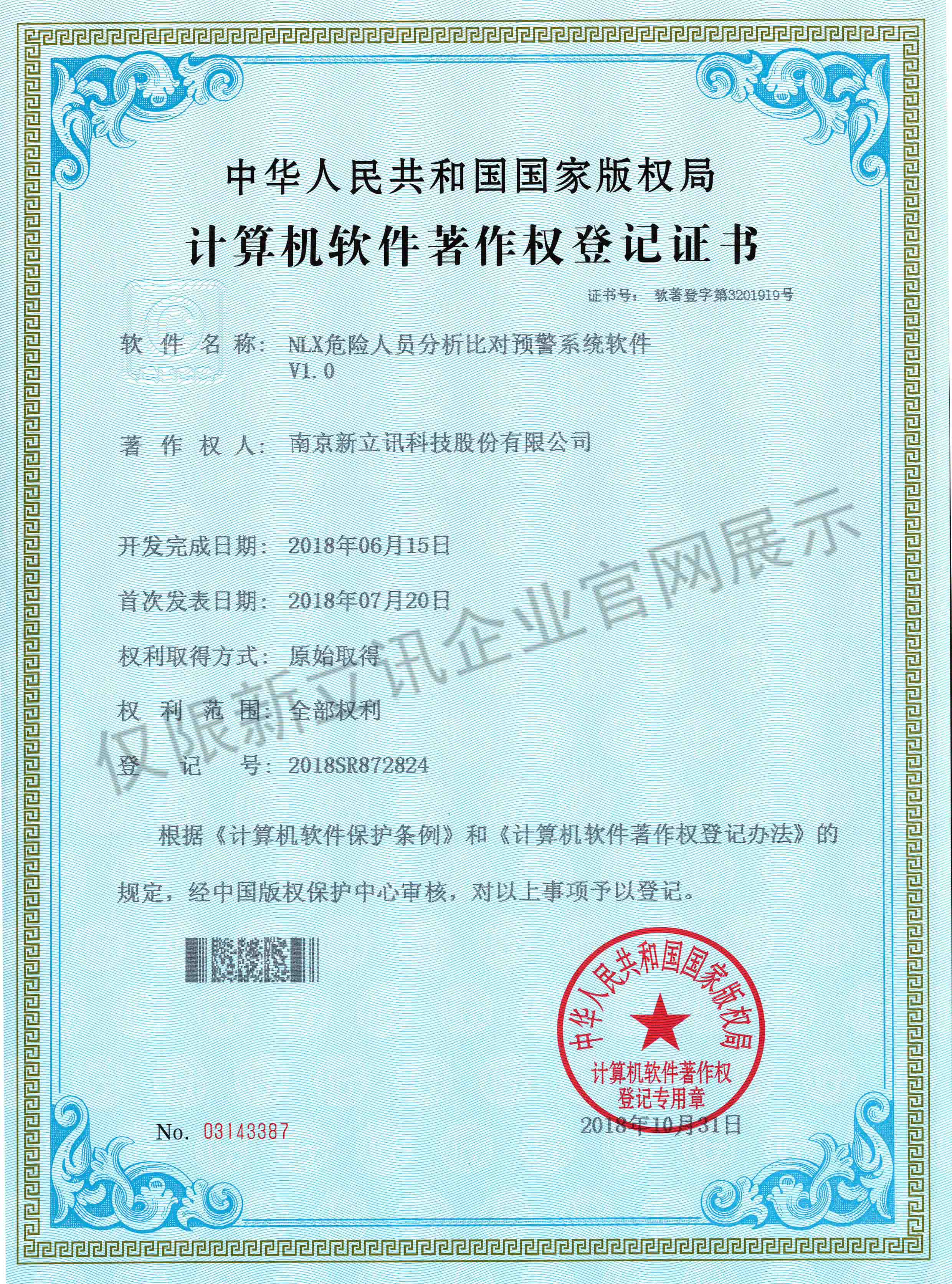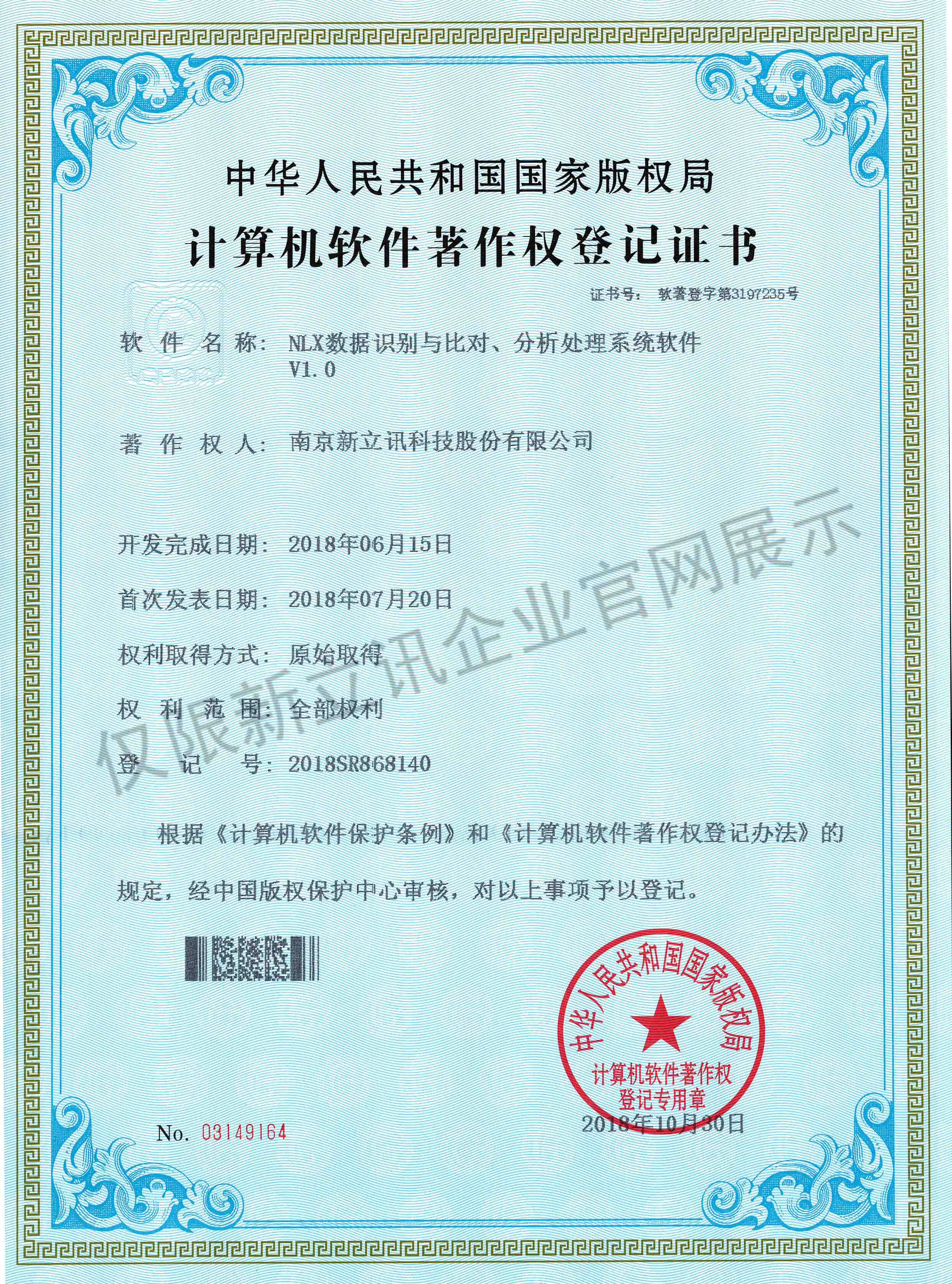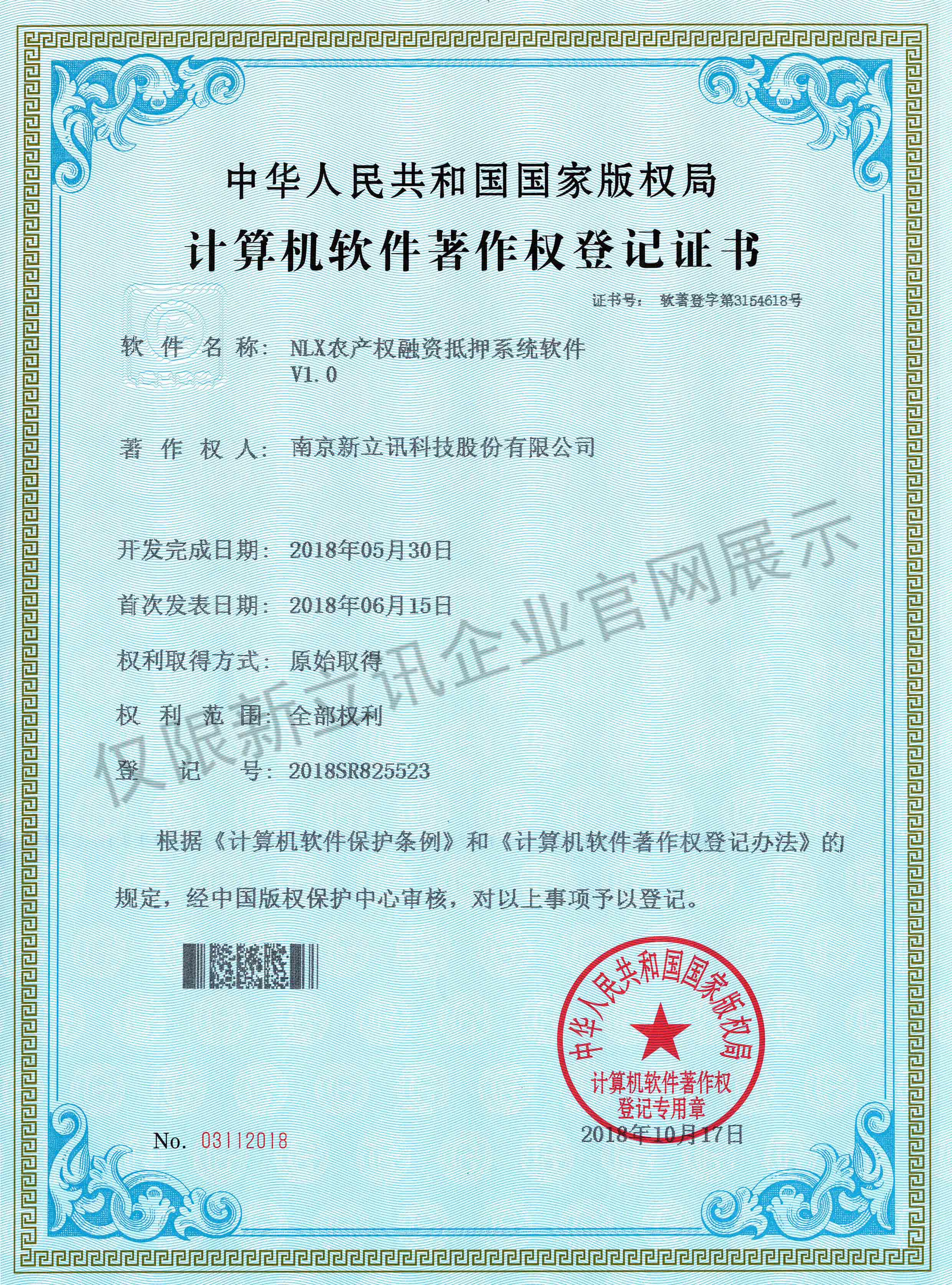 • 2016-07-20新立訊軟件著作權證書--NLX人臉考勤門禁管理系統V1.0查看