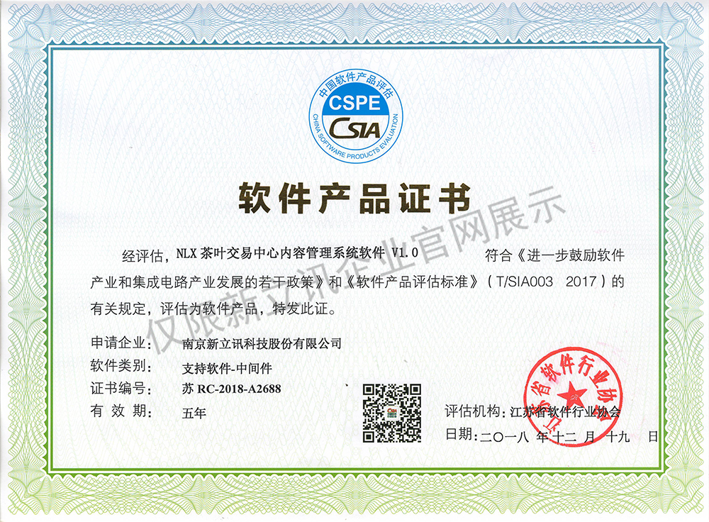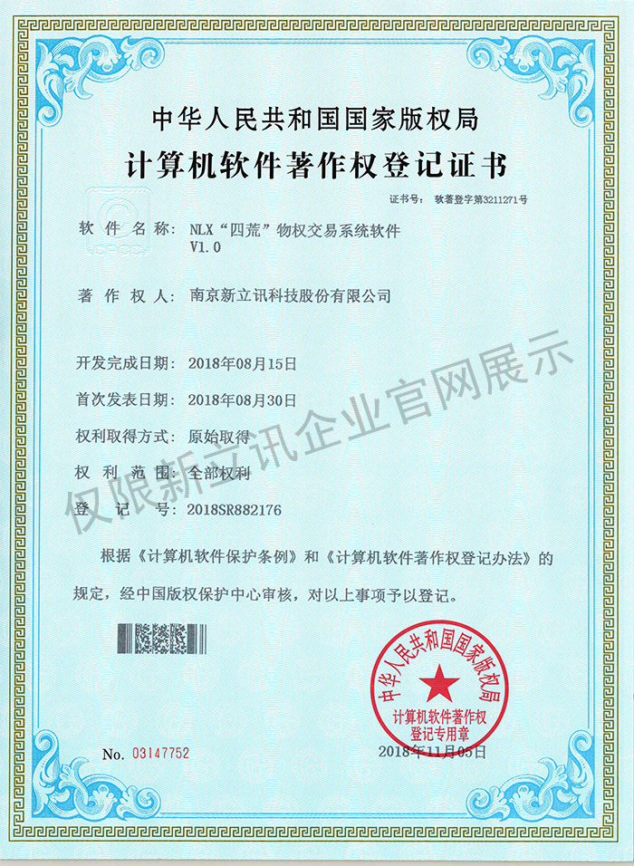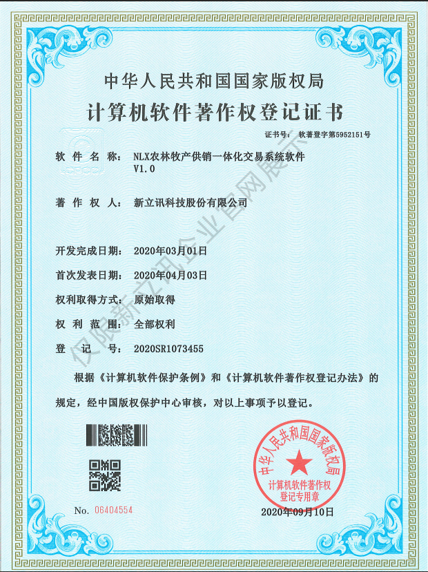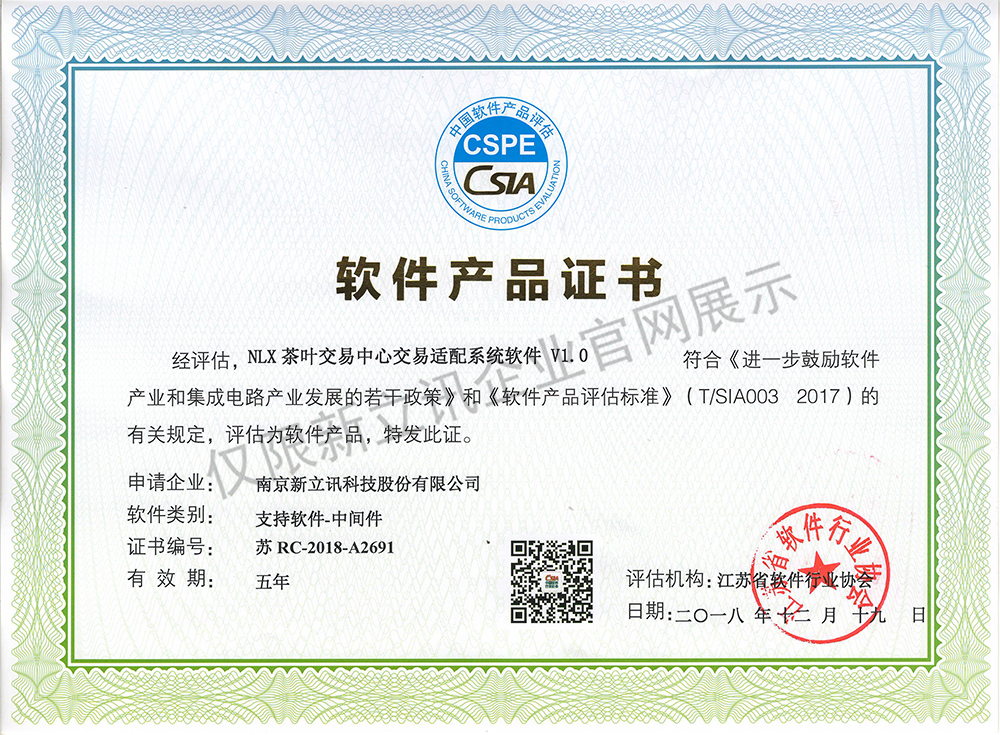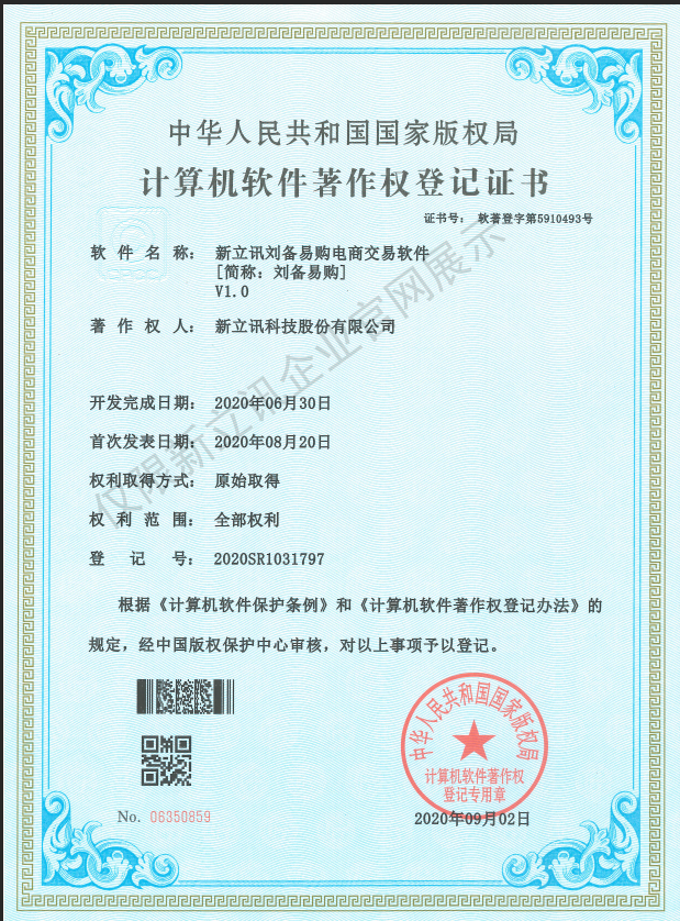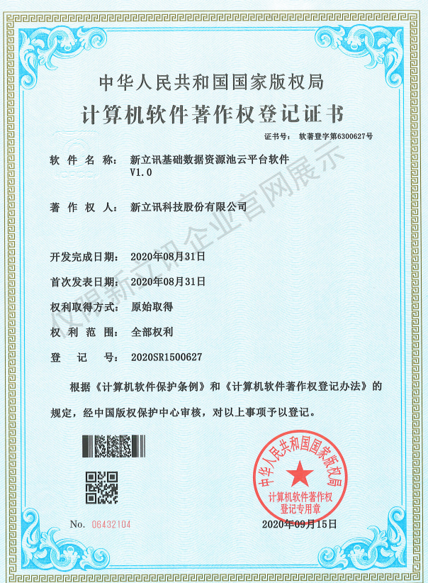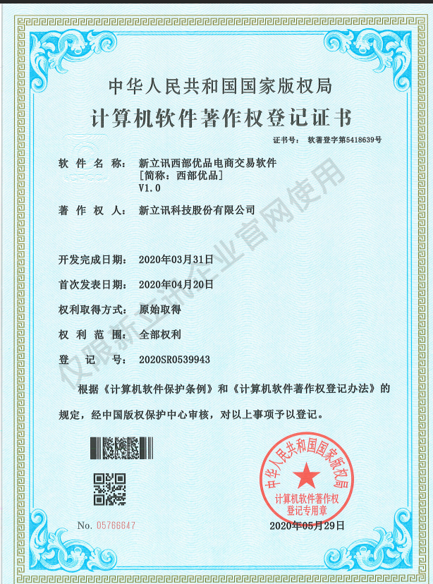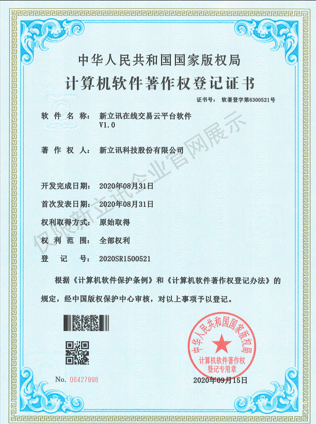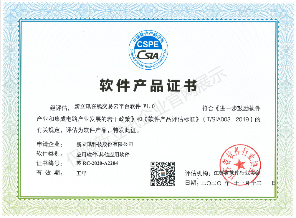 • 2020-12-28新立訊在線交易云平臺軟件V1.0軟件產品證書查看