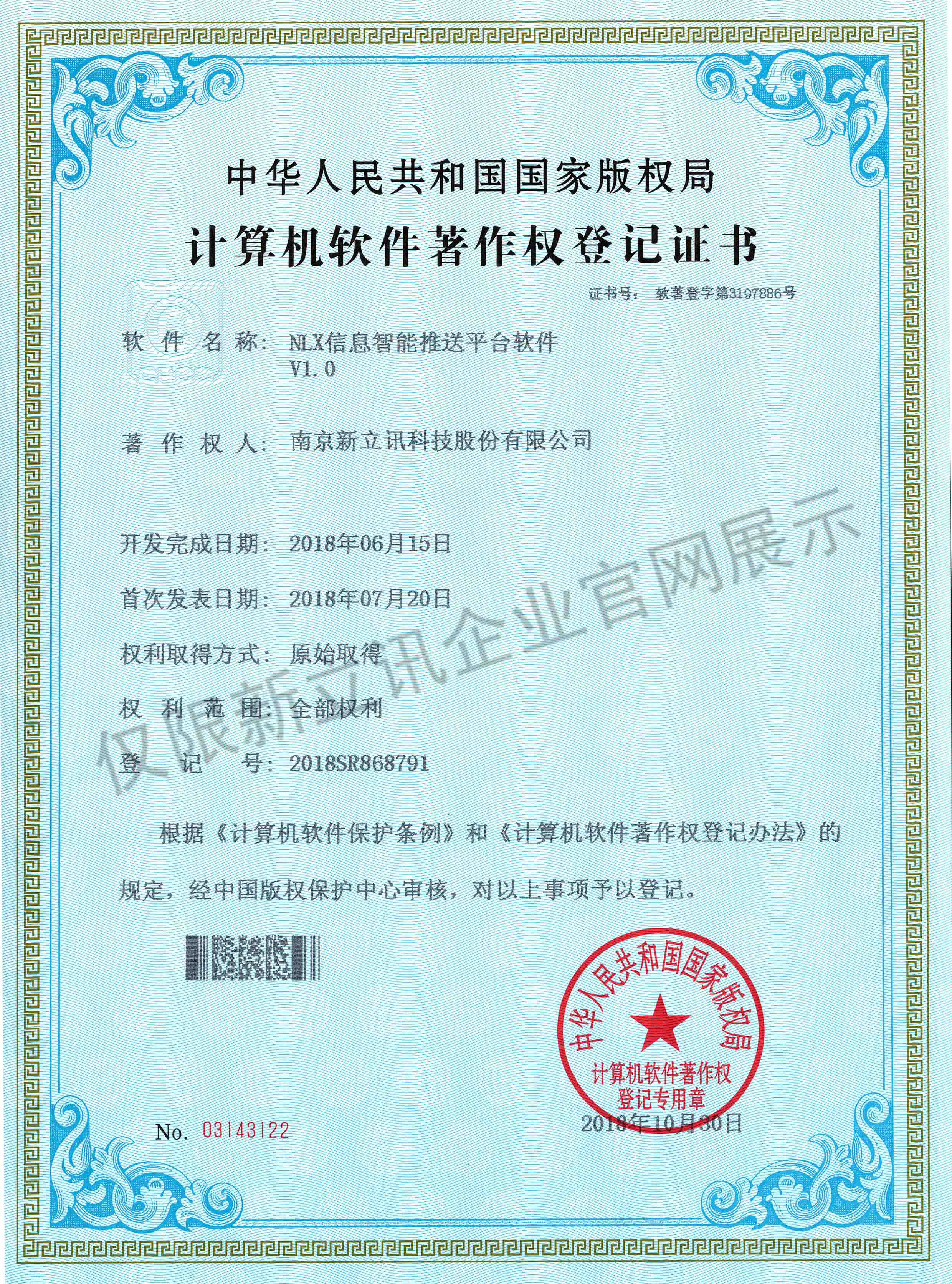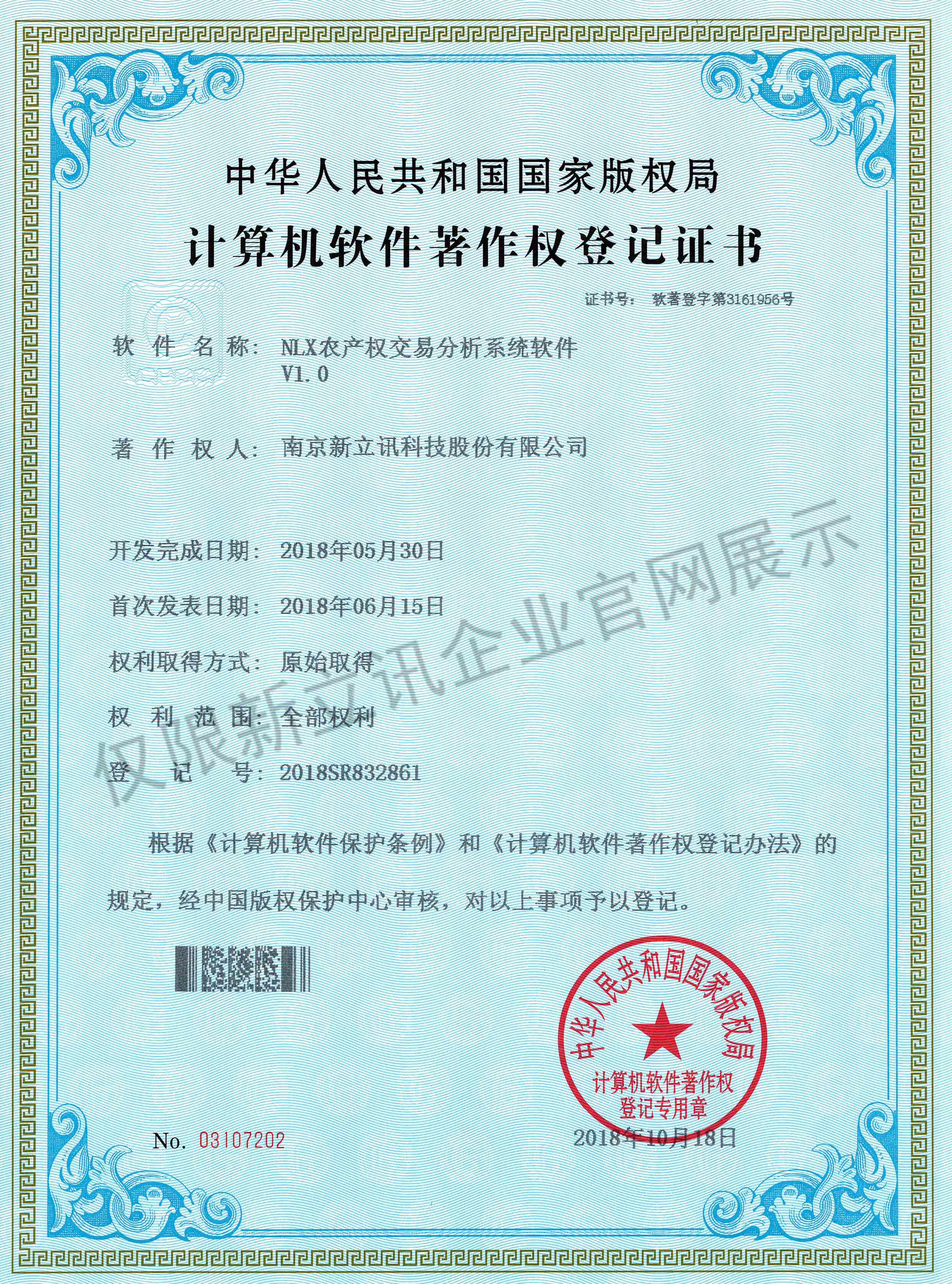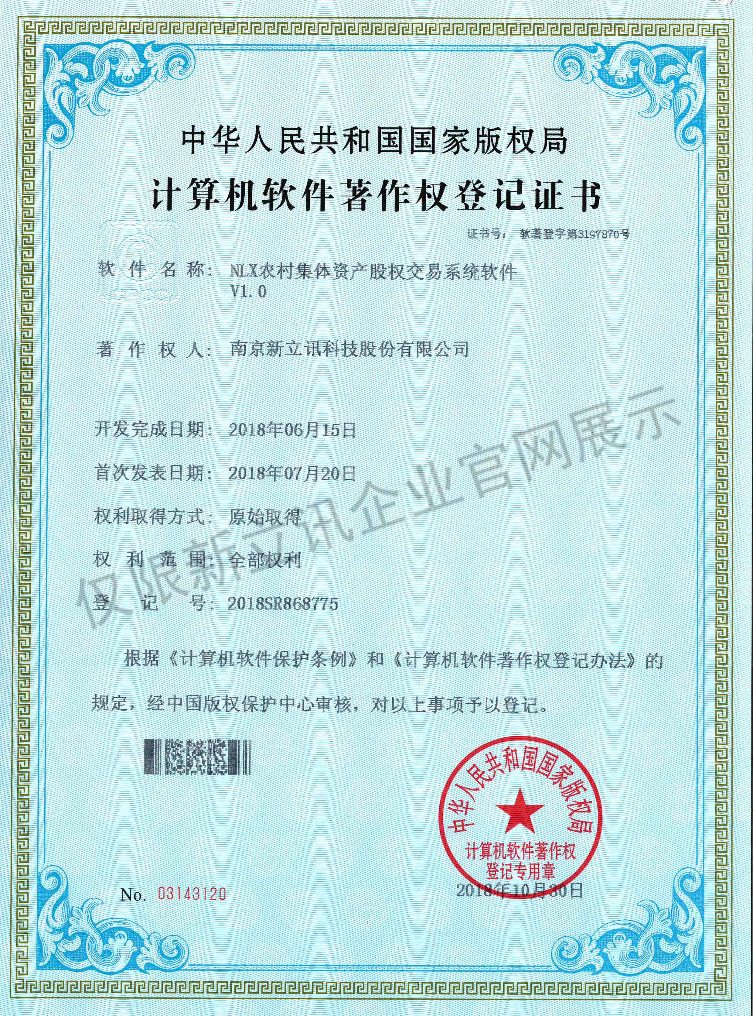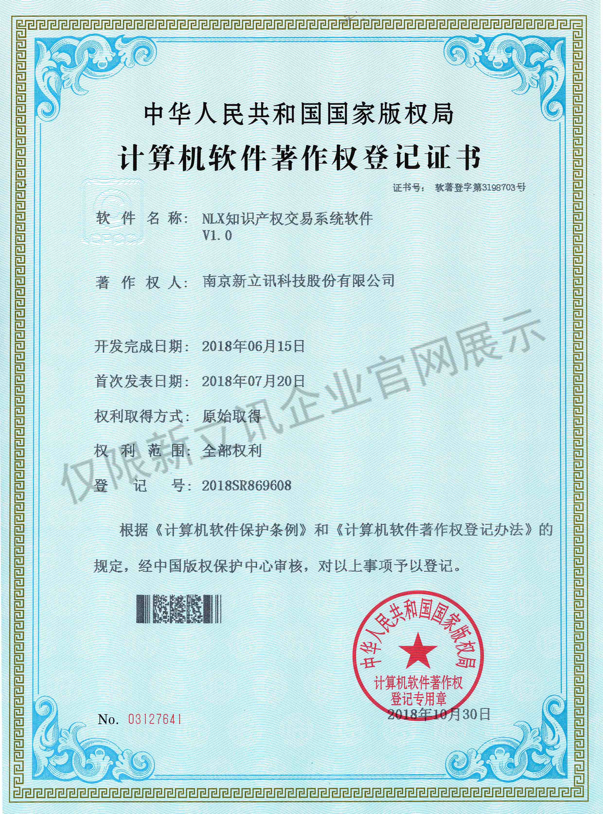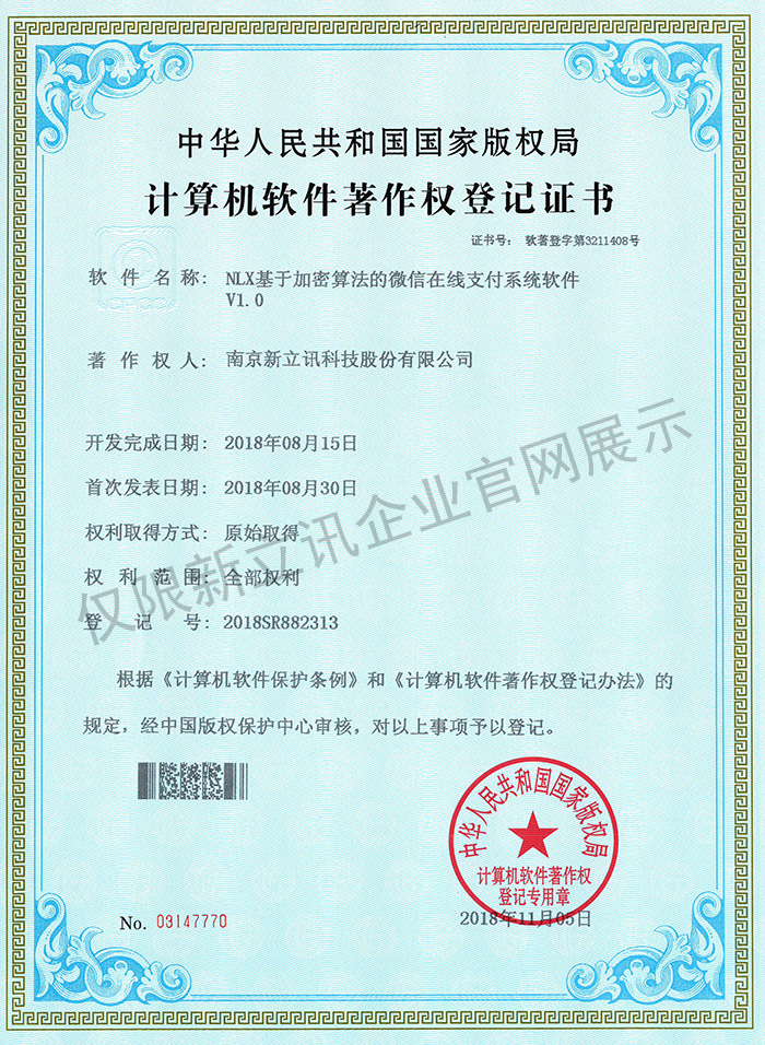 • 2020-12-28新立訊在線交易云平臺軟件V1.0軟件產品證書查看