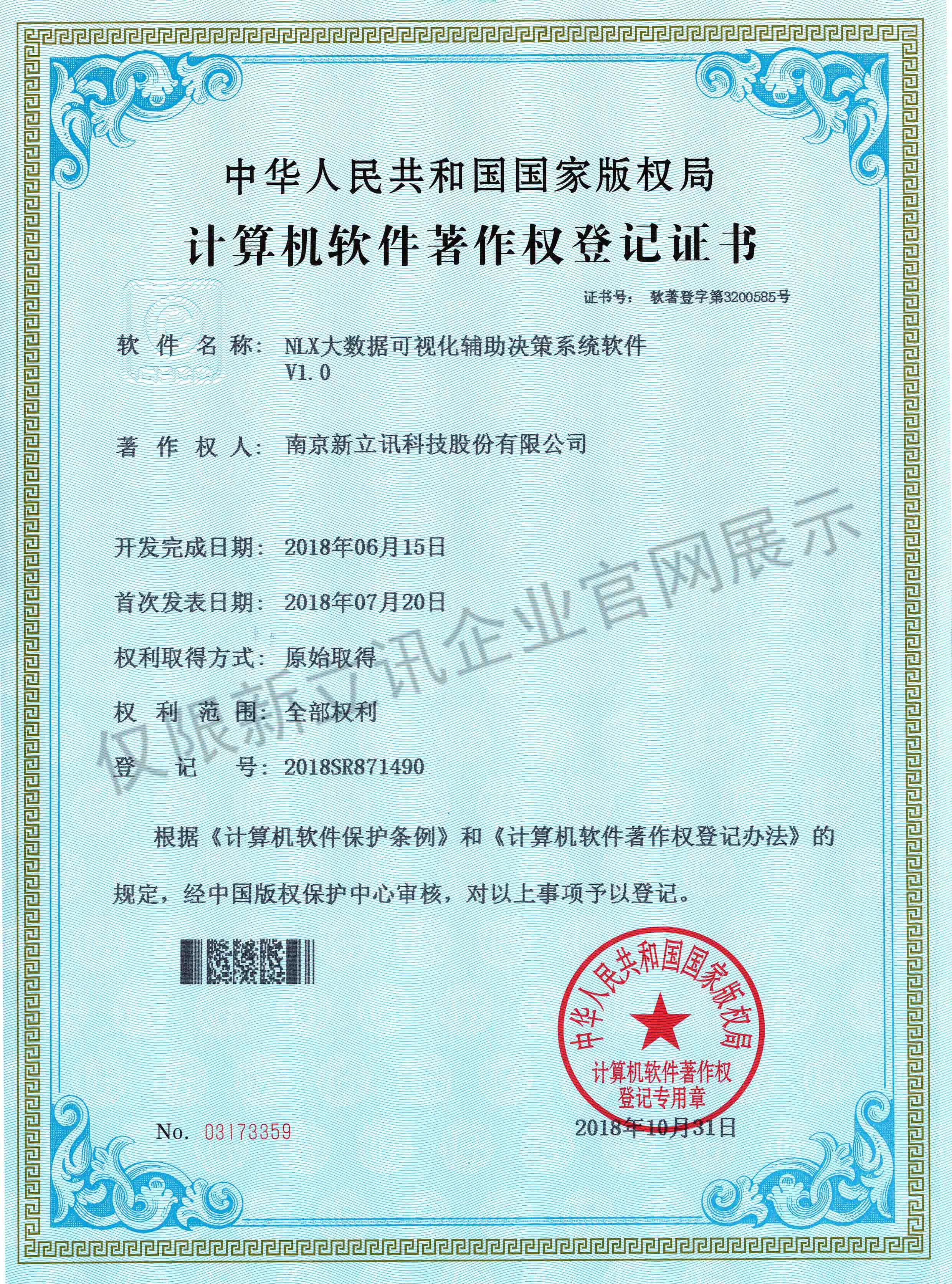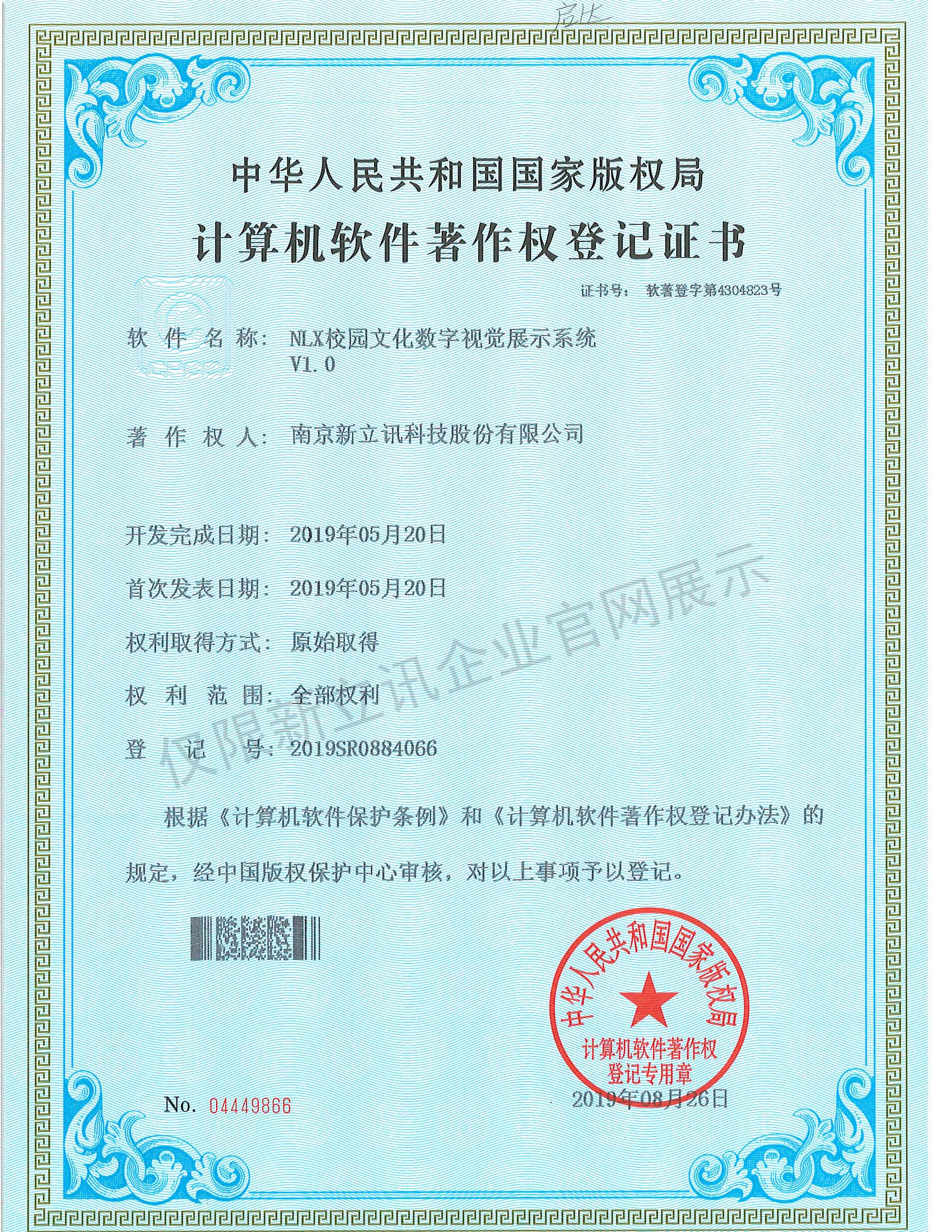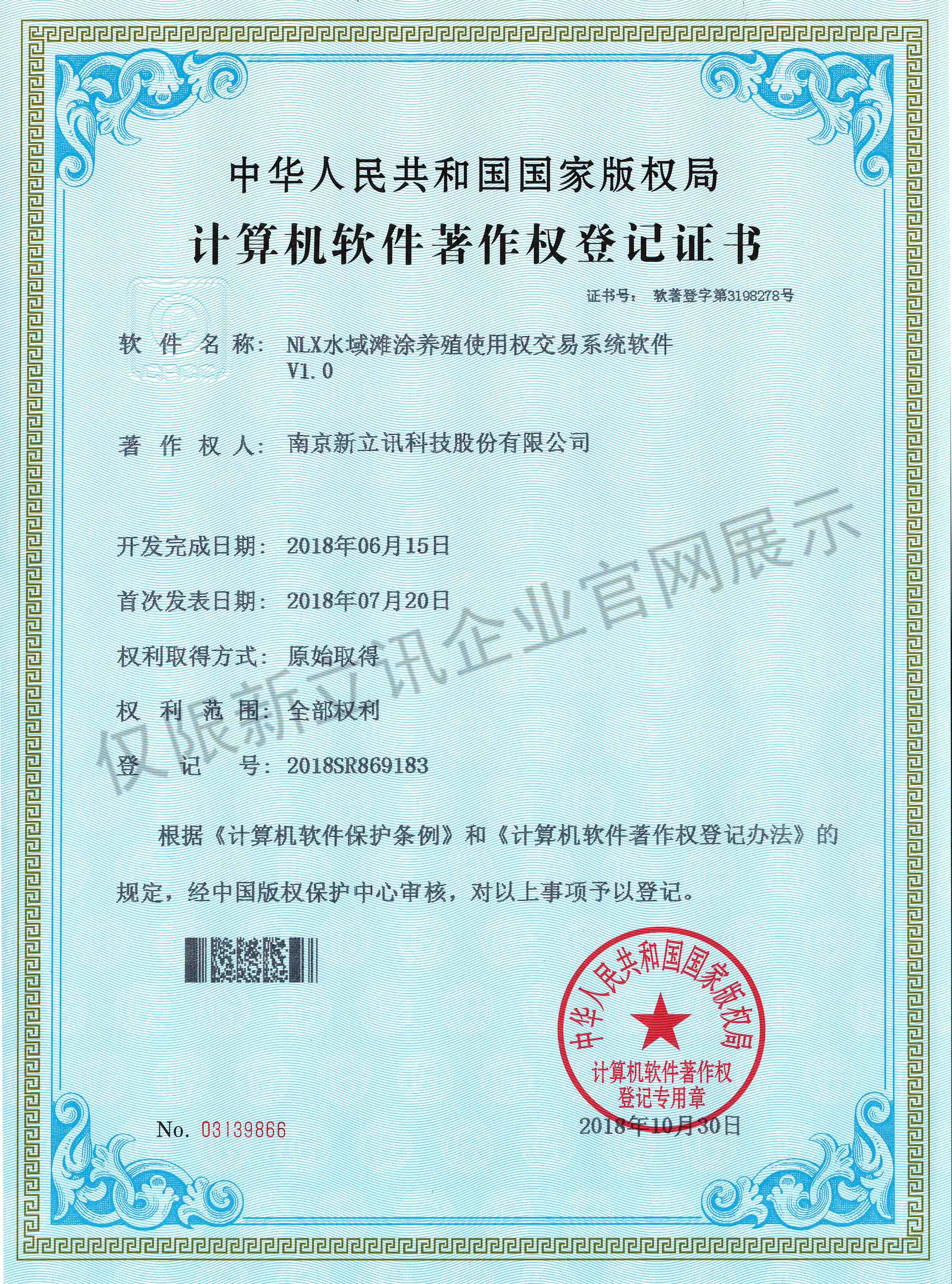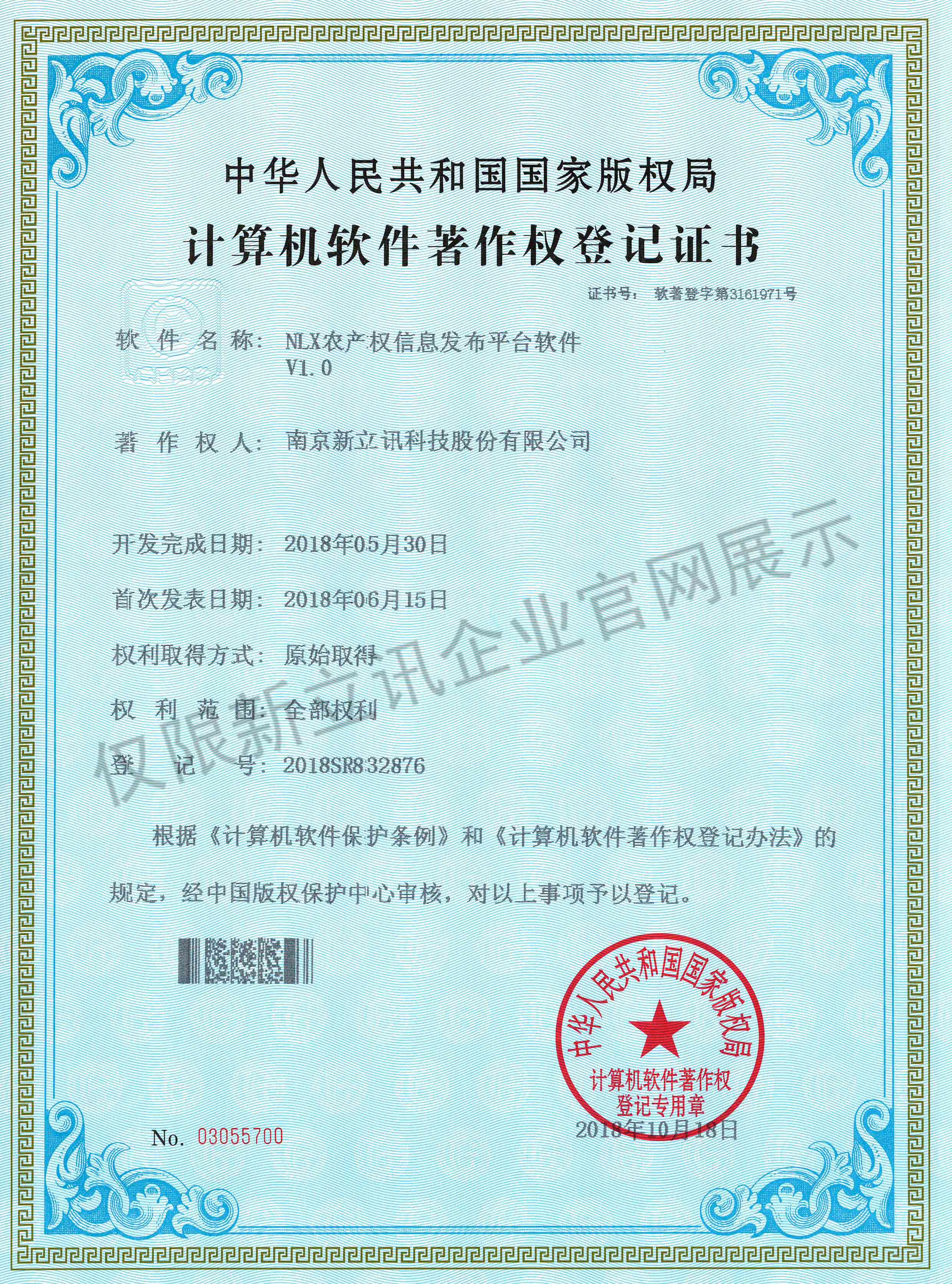 • 2020-12-28新立訊在線交易云平臺軟件V1.0軟件產品證書查看