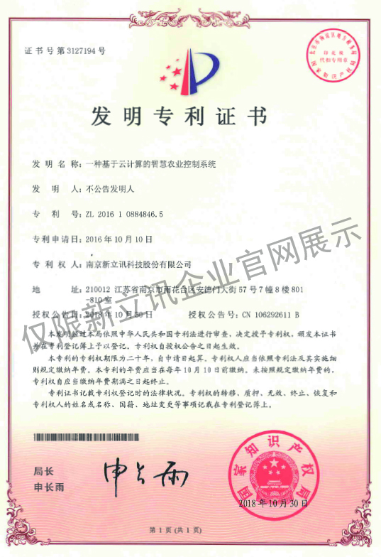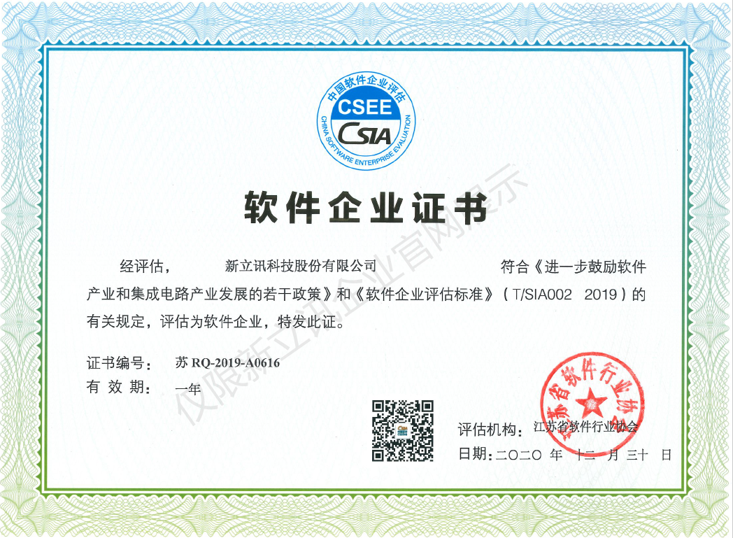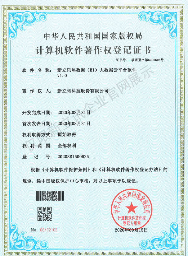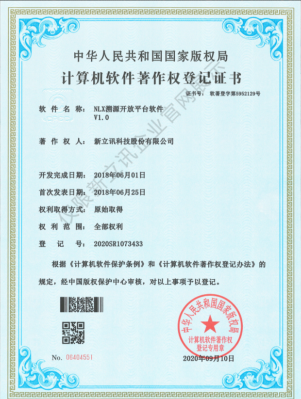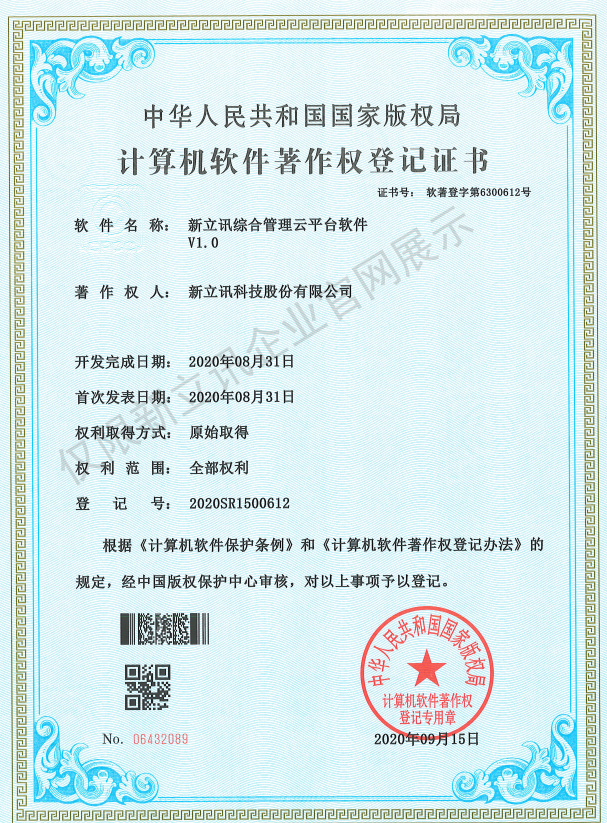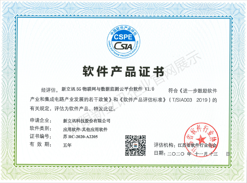 • 2020-12-28新立訊5G物聯網與數據監測云平臺軟件V1.0軟件產品證書查看