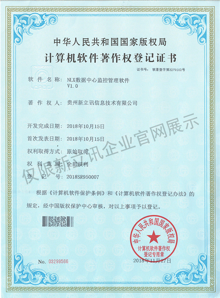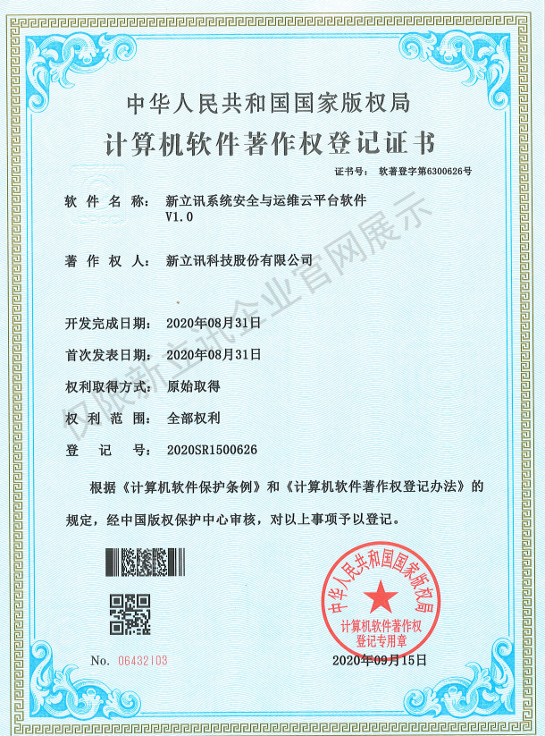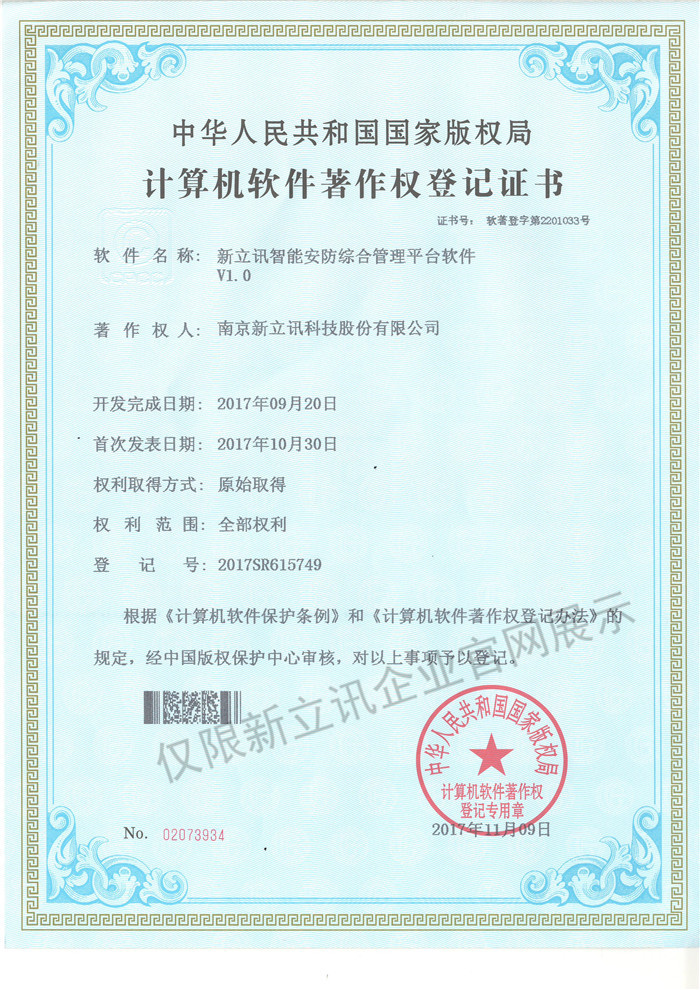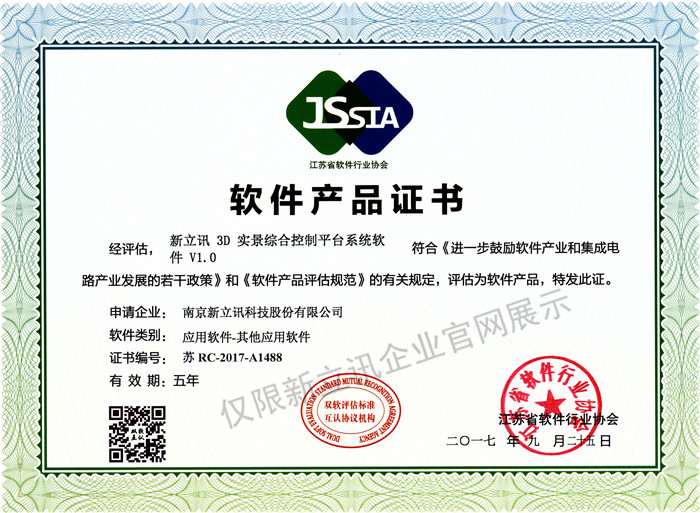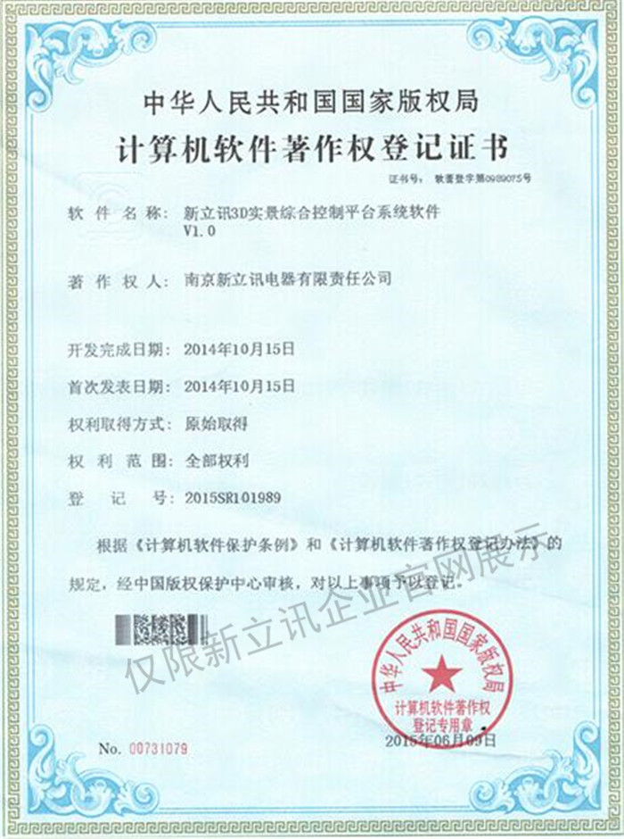 • 2016-07-20新立訊軟件著作權證書--新立訊3D實景綜合監控平臺系統軟件V1.0查看