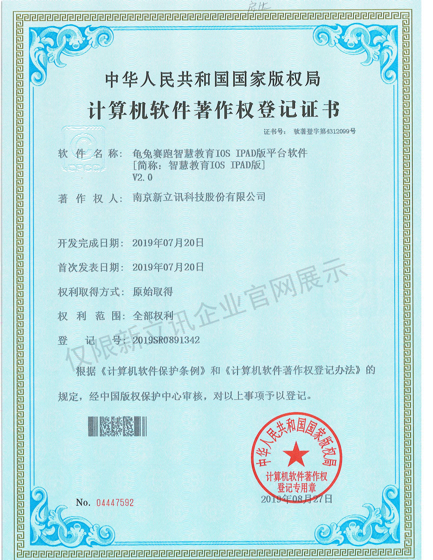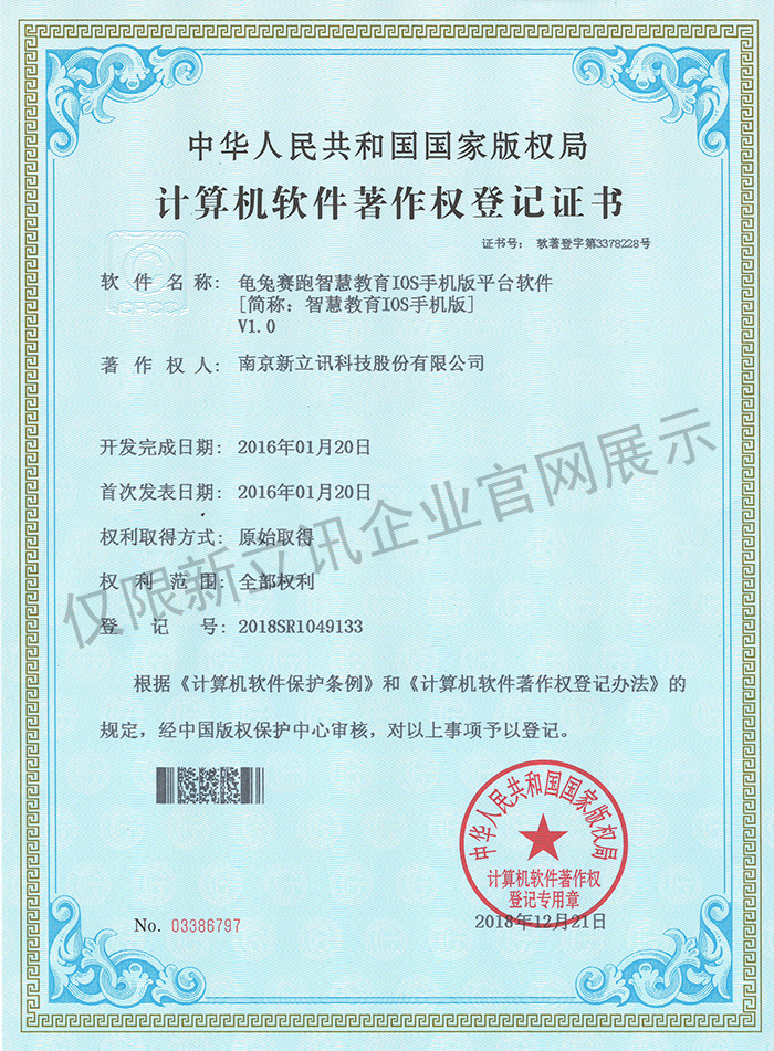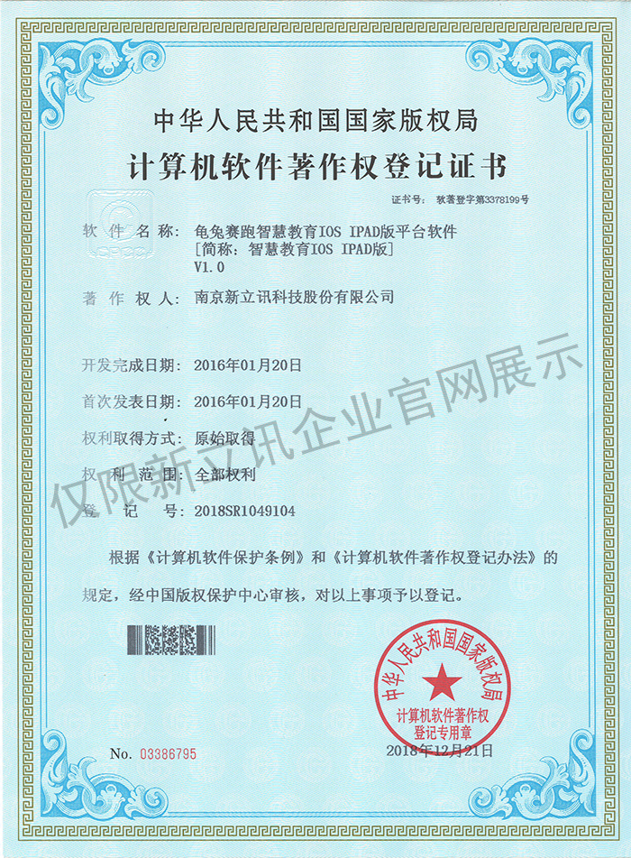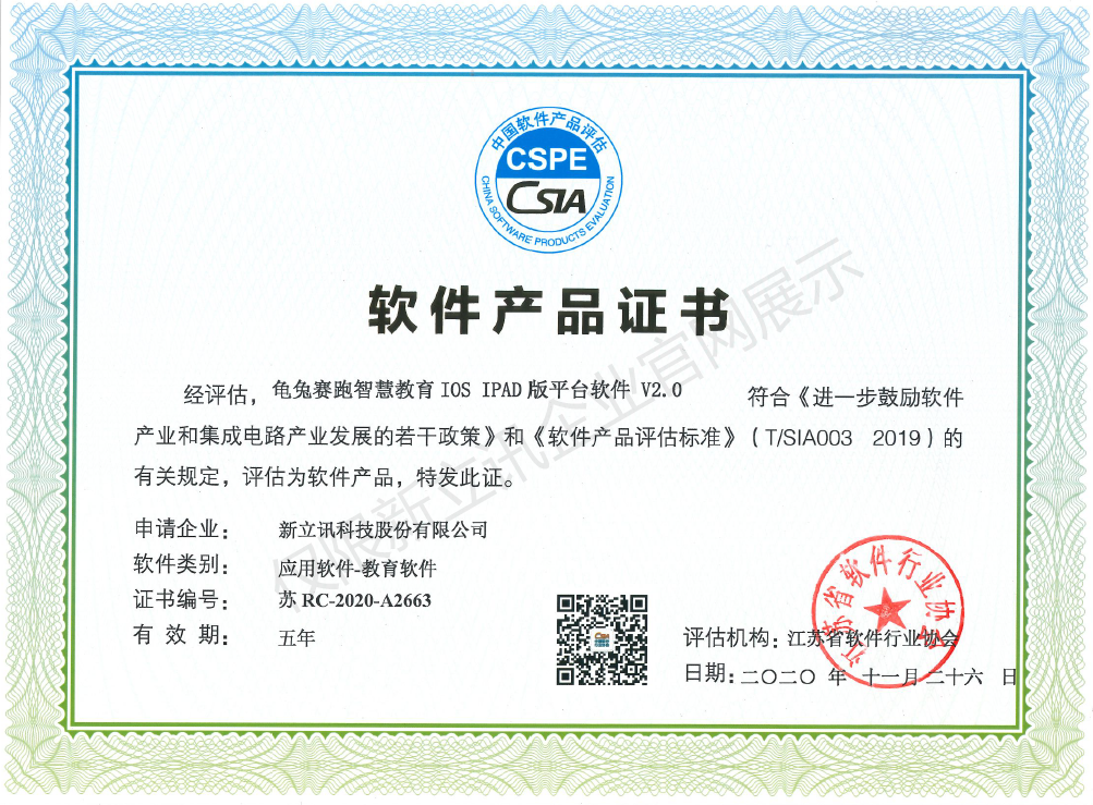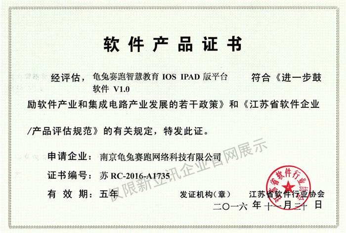 • 2020-12-28龜兔賽跑智慧教育IOS IPAD版平臺軟件V2.0軟件產品證書查看
