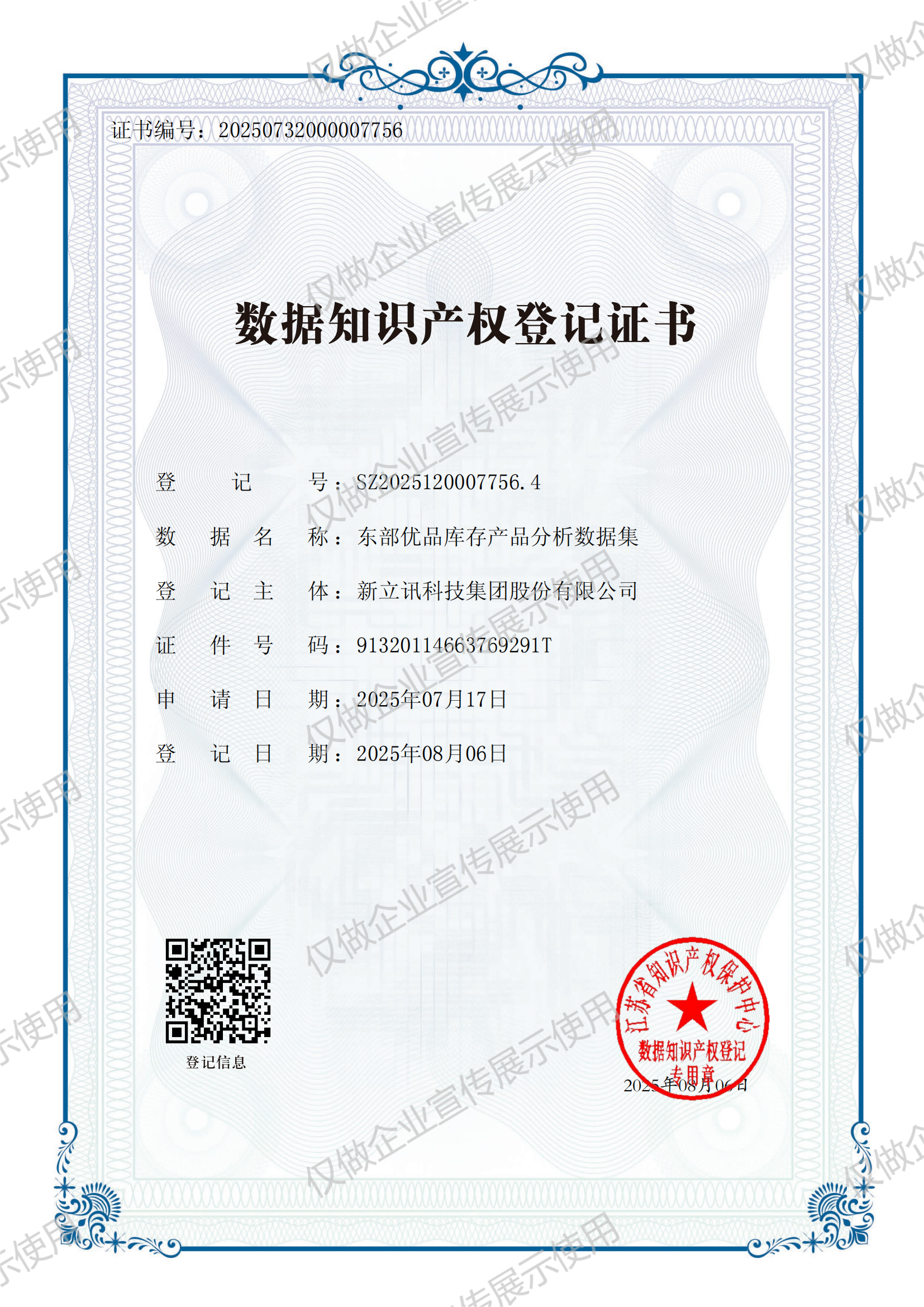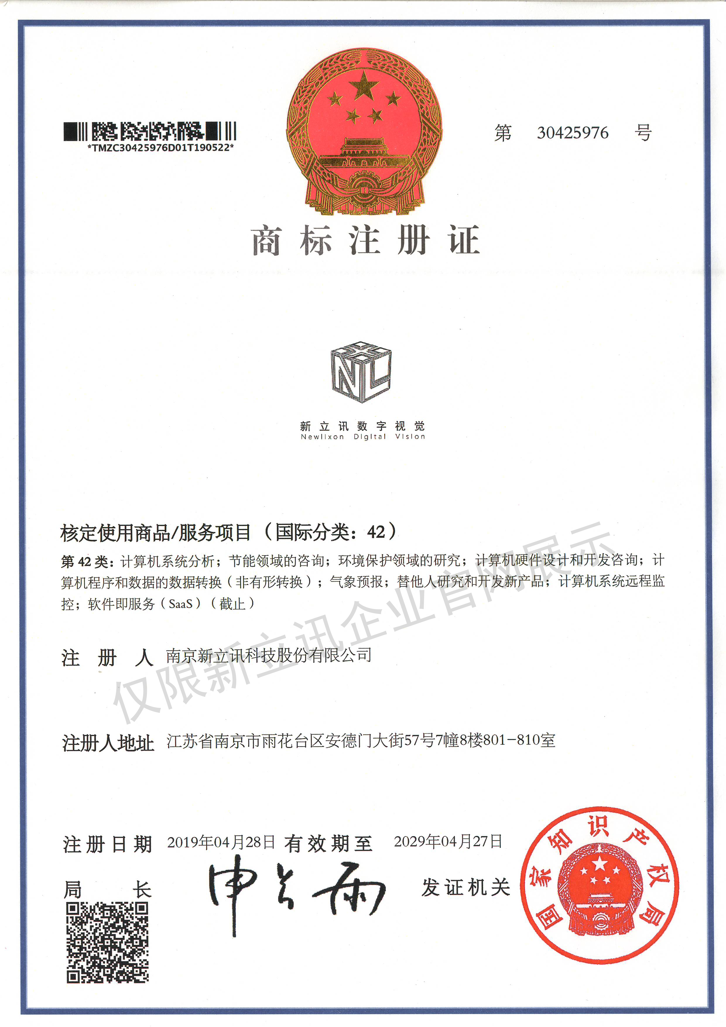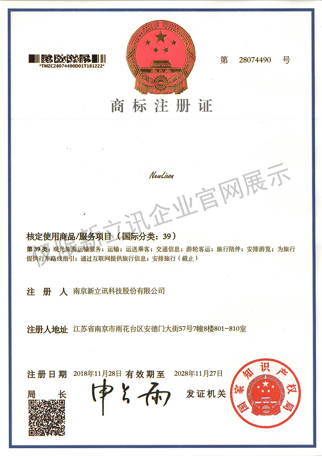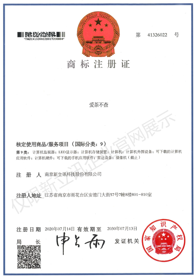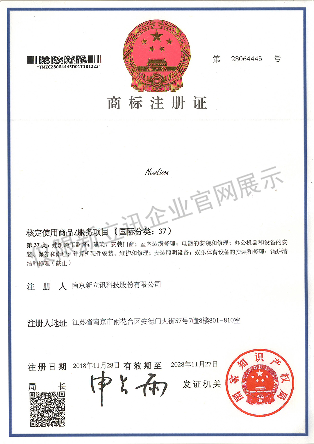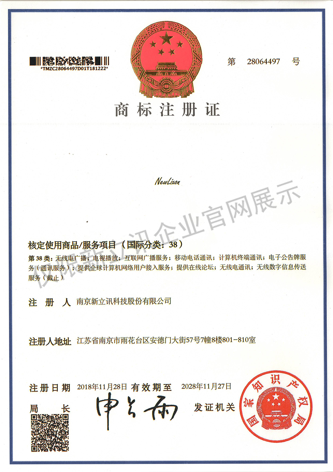 • 2019-12-03第30442750號 新立訊商標注冊證(國際分類:35)查看