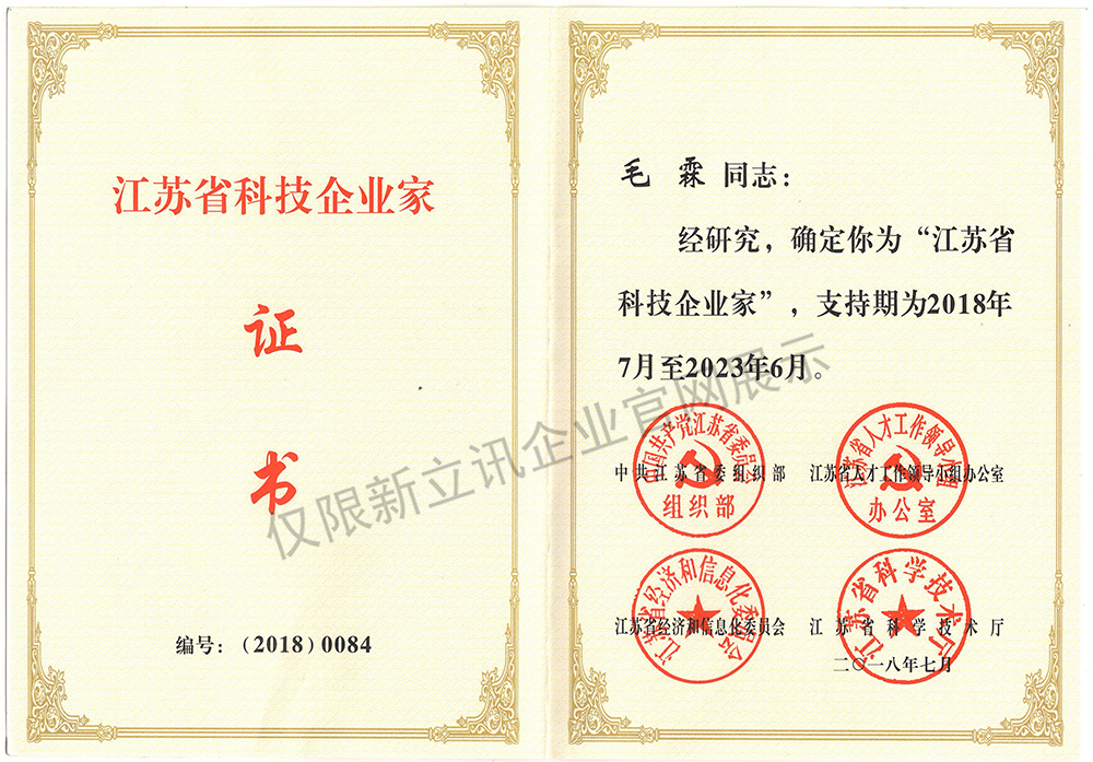 • 2019-04-24江蘇省科技企業家證書查看