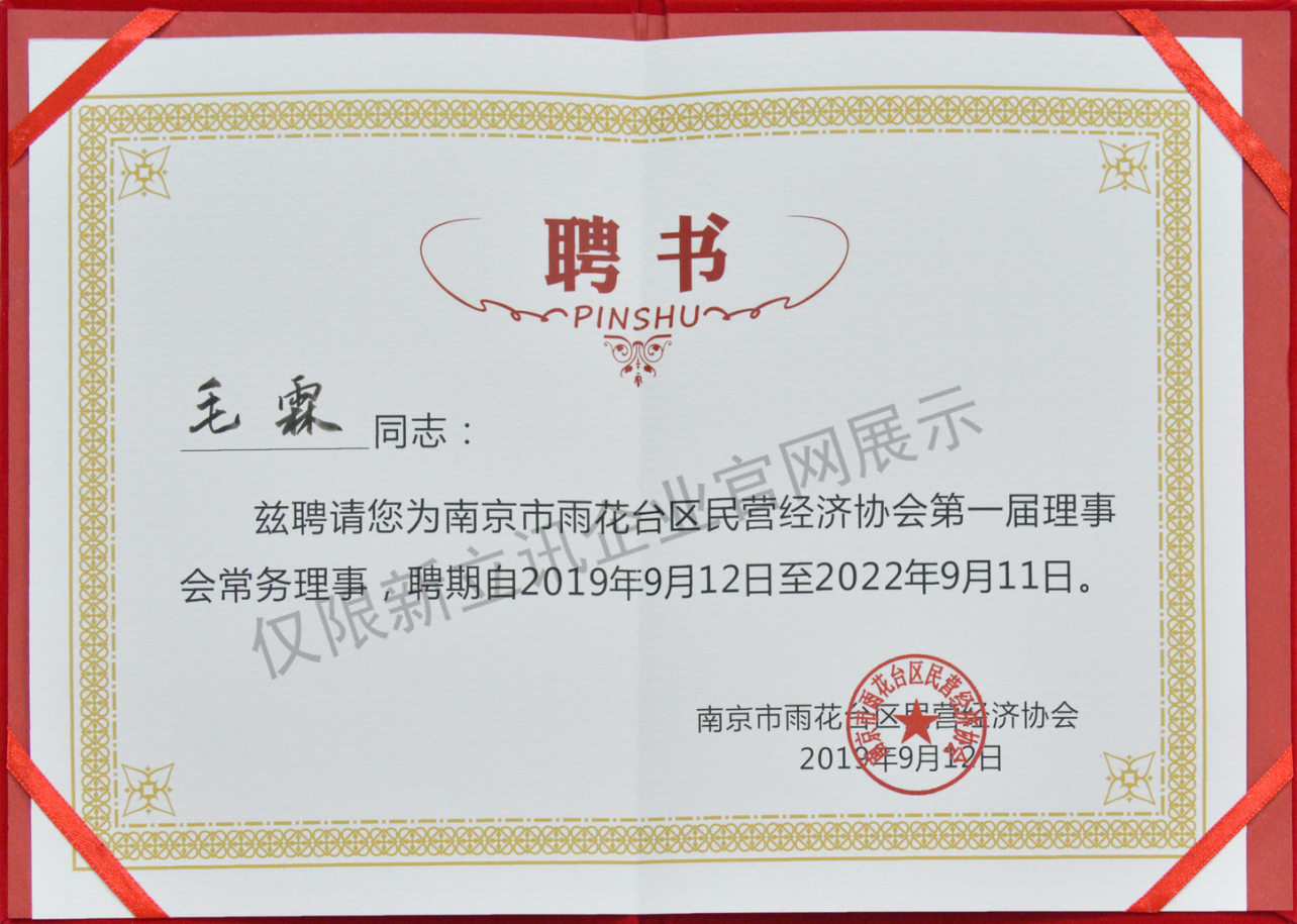 • 2019-09-13南京市雨花臺區民營經濟協會理事會常務理事查看