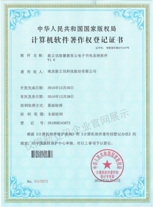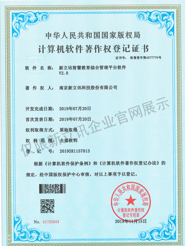 • 2021-06-08軟件產品證書--新立訊智慧教育綜合管理平臺軟件V2.0查看