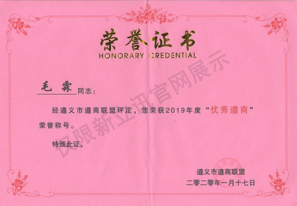 • 2020-02-282019年度“優秀遵商”證書查看