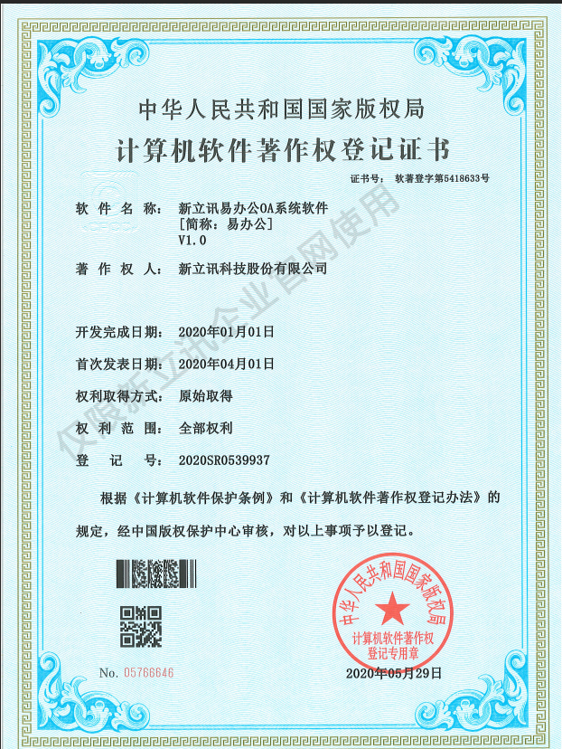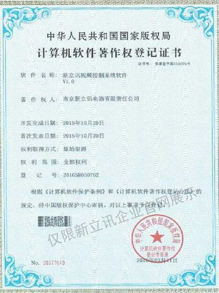 • 2016-07-20新立訊軟件著作權證書--新立訊視頻控制系統軟件V1.0查看