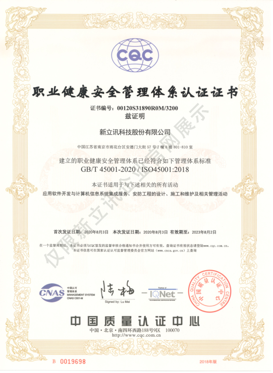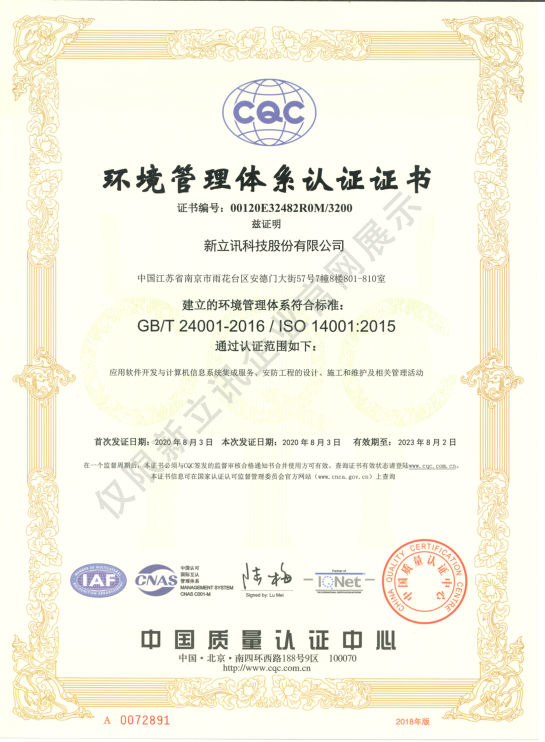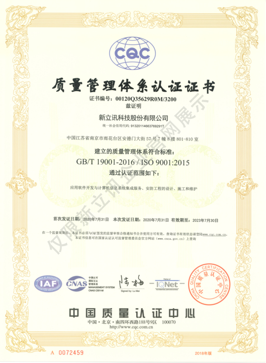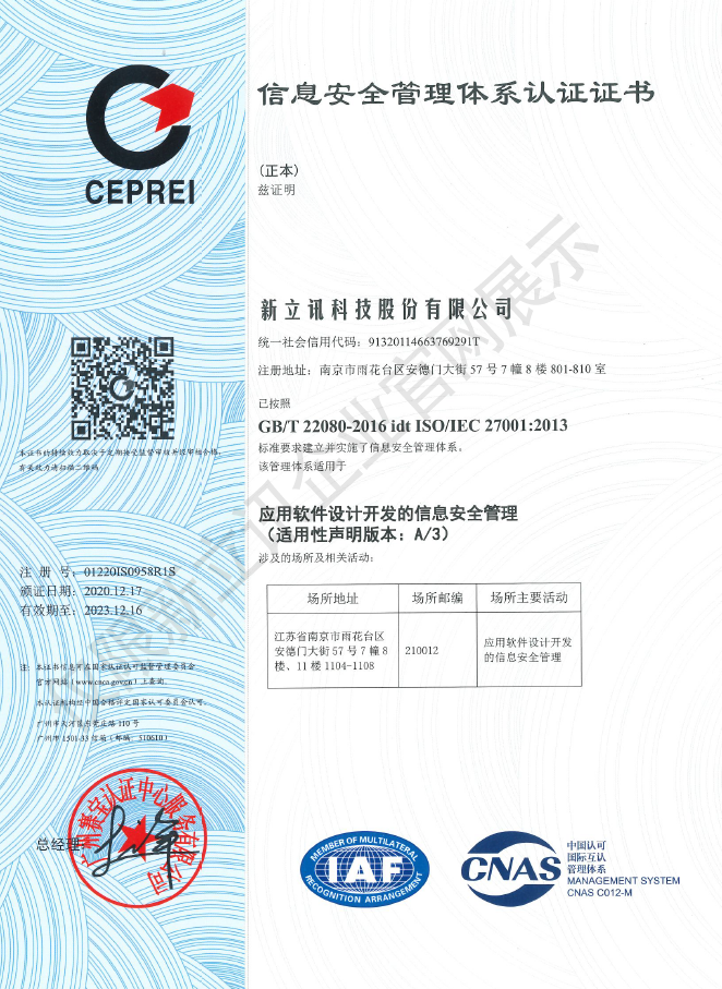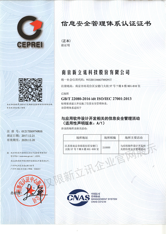 • 2020-12-28ISO27001:信息安全管理體系認證證書查看