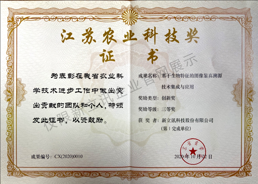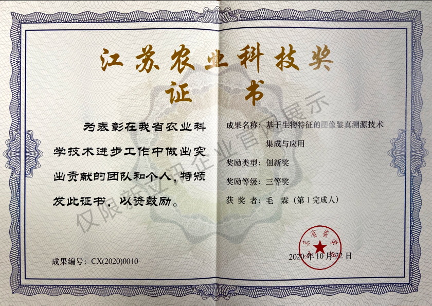 • 2020-11-24鑒真溯源技術集成于應用創新獎(江蘇農業科技獎)查看