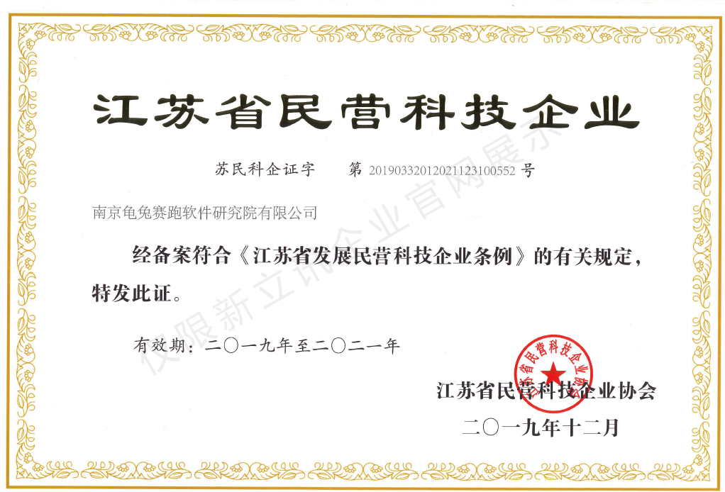 • 2020-11-26江蘇省民營科技企業(龜兔)查看