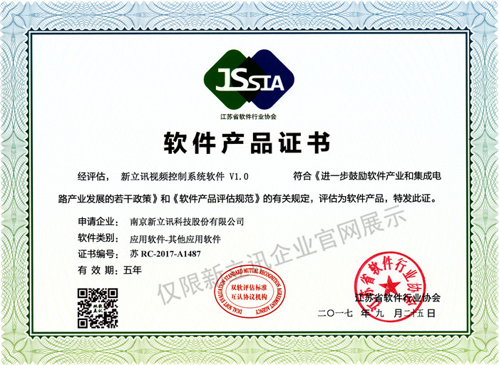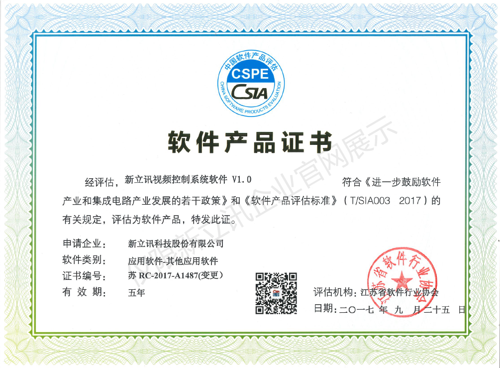 • 2020-12-28新立訊視頻控制系統軟件V1.0軟件產品證書查看