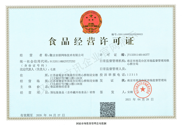 • 2021-05-07農聯網絡食品經營許可證查看