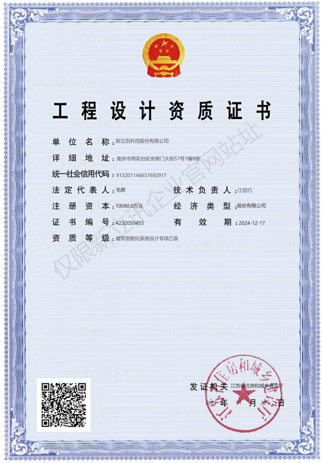 • 2021-12-09建筑智能化系統設計專項乙級資質查看