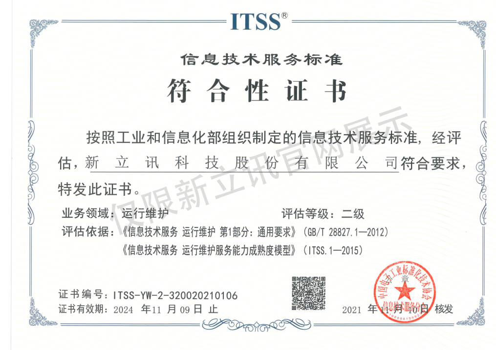 • 2022-02-16ITSS信息技術服務運行維護能力二級證書查看