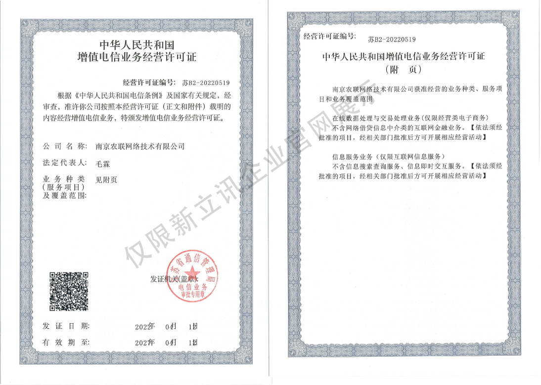 • 2022-04-18農聯網絡增值電信業務經營許可證查看