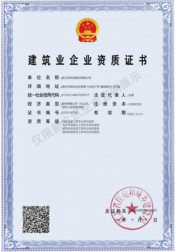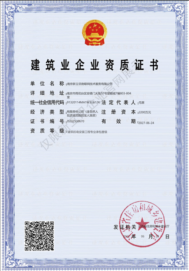 • 2022-07-01建筑機電安裝工程專業承包一級(物聯網)查看