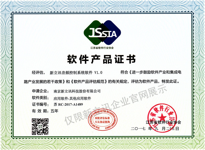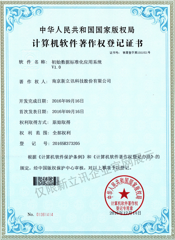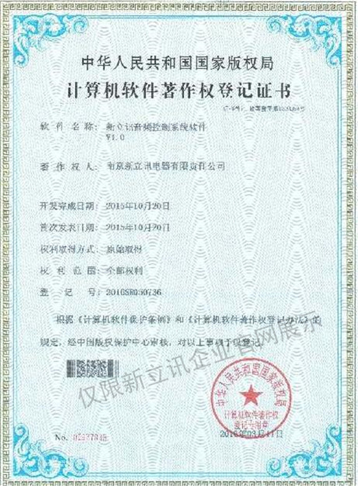 • 2016-07-20新立訊軟件著作權證書--新立訊音頻控制系統軟件V1.0查看