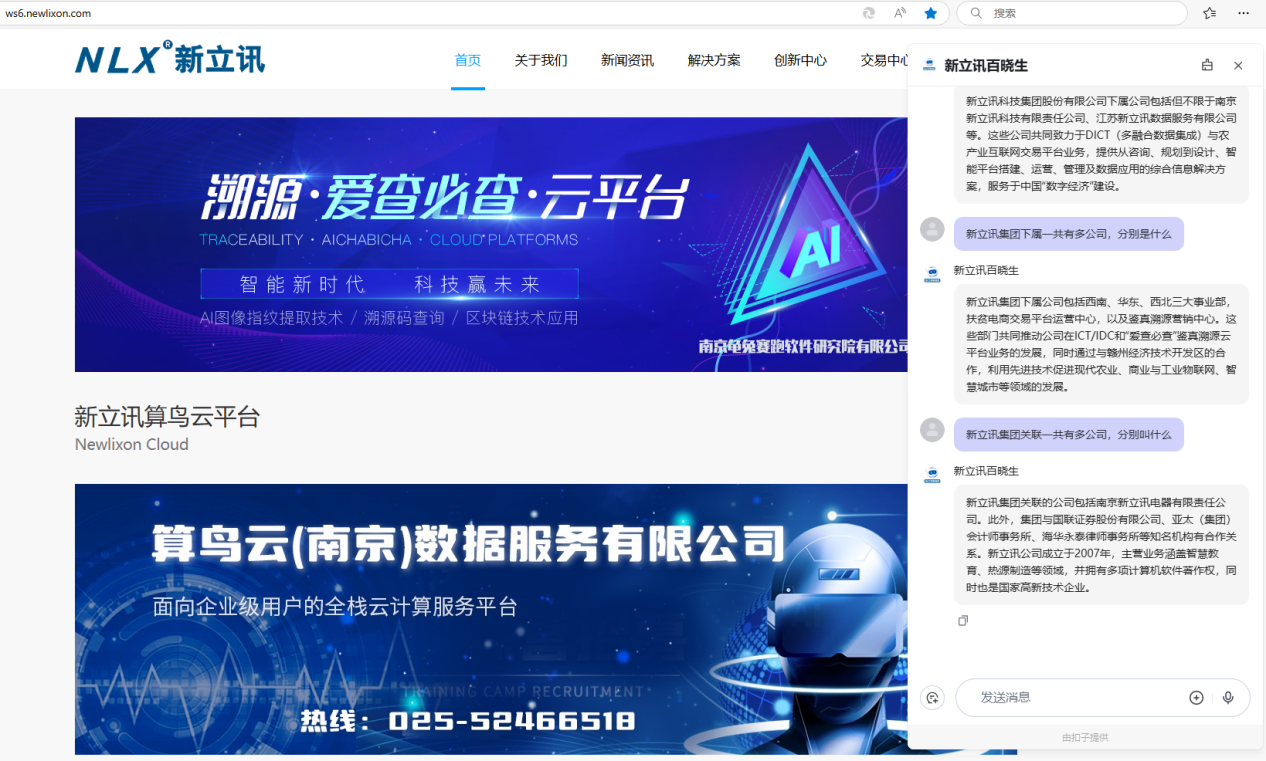 通過適配融合DeepSeek大模型進行接入官網(新立訊百曉生)以及新立訊公眾號(新立訊智多星)等依靠大模型構建企業知識庫,整合內部眾多知識關鍵節點,為內部和外部信息數據共享提供便利,并實現企業業務咨詢的秒級響應,大幅提升溝通效率。