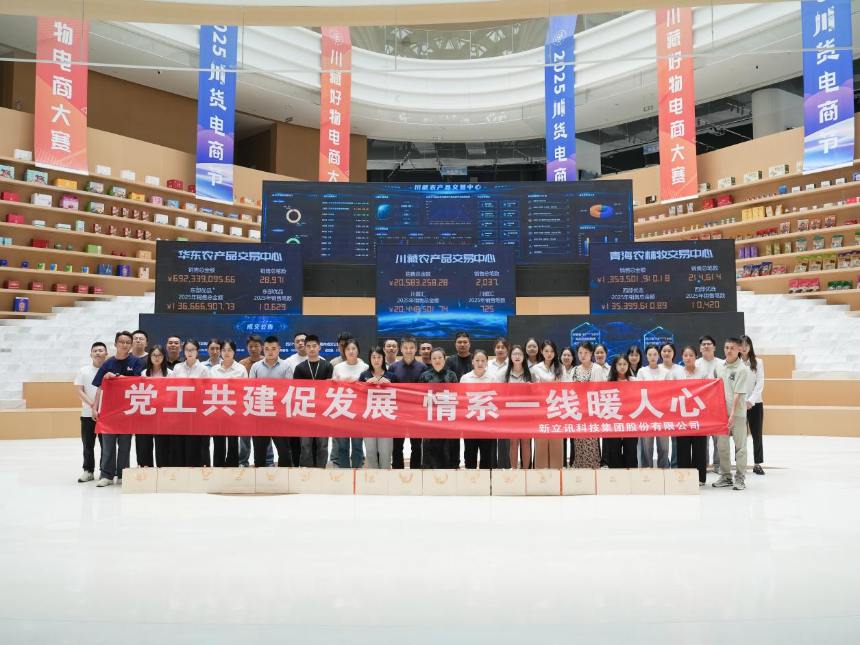 在喜迎中國(guó)共產(chǎn)黨成立104周年之際,新立訊科技集團(tuán)黨支部聯(lián)合工會(huì)于2025年6月27日開展"黨工共建促發(fā)展 情系一線暖人心"主題慰問活動(dòng)。公司黨員代表及工會(huì)主席王宗蘭前往川藏農(nóng)產(chǎn)品交易中心,為協(xié)辦四川省“2025川貨電商節(jié)”川藏好物電商大賽堅(jiān)守崗位的一線員工送去慰問品和深切關(guān)懷。