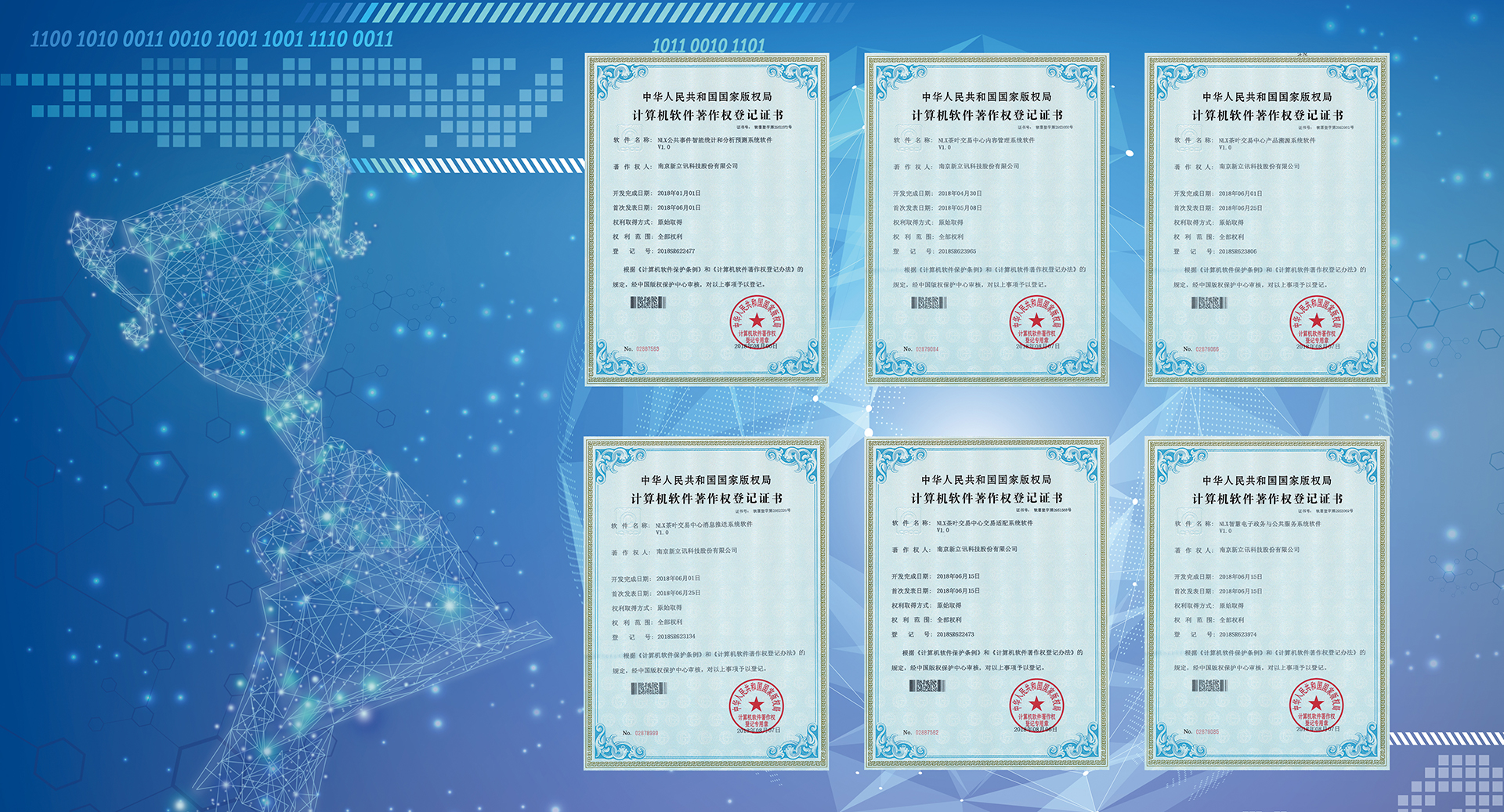 本次,新立訊向中國版權保護中心申報6個計算機軟件項目,分別為“NLX智慧電子政務與公共服務系統軟件”、“NLX公共事件智能統計和分析預測系統軟件”、“NLX茶葉交易中心內容管理系統軟件”、“NLX茶葉交易中心產品溯源系統軟件”、“NLX茶葉交易中心消息推送系統軟件”、“NLX茶葉交易中心交易適配系統軟件”。此6款計算機系統軟件各項指標均達到軟件產品登記測試規范要求,經中國版權保護中心審核、登記并頒發軟件著作權證書。截至目前,新立訊已擁有軟件著作權50余項。