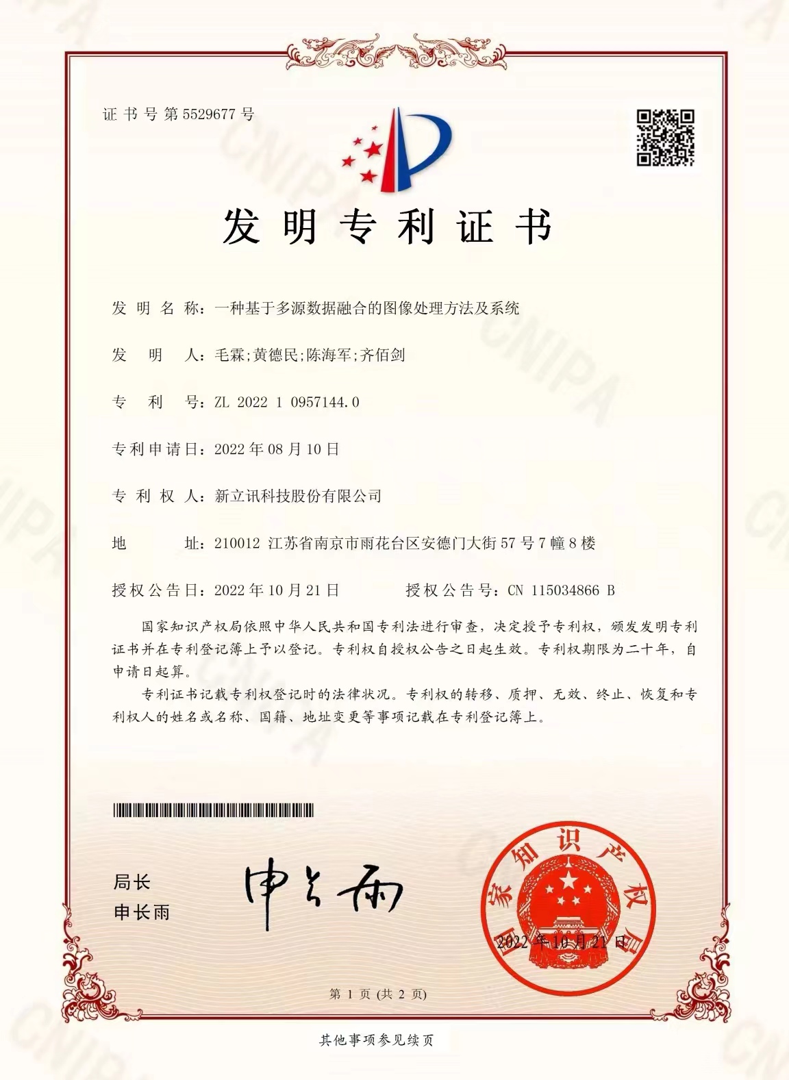 近日,我司新獲國家知識產(chǎn)權(quán)局兩項發(fā)明專利,發(fā)明專利號:ZL2022109571440,一種基于多源數(shù)據(jù)融合的圖像處理方法及系統(tǒng);發(fā)明專利號:ZL2022109571455,一種數(shù)據(jù)鑒真處理方法、裝裝置、計算機設(shè)備及存儲介質(zhì)。