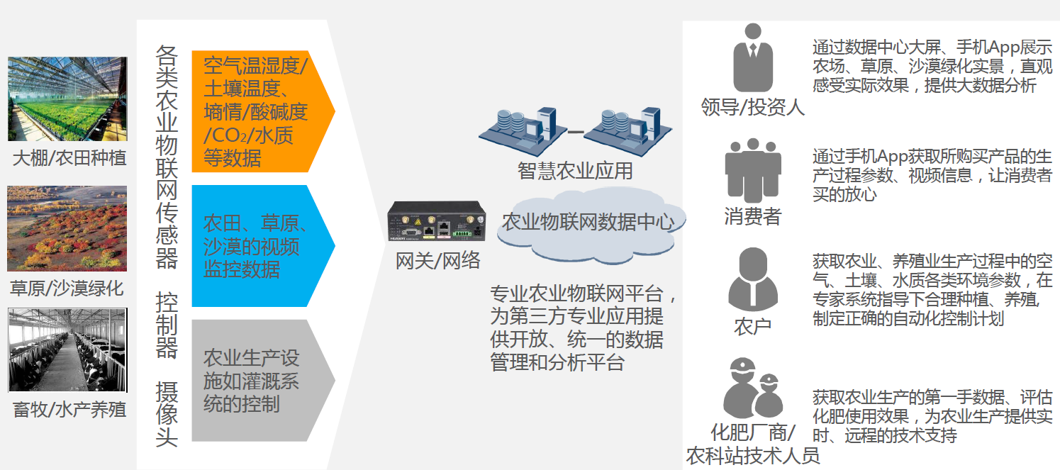 利用各種傳感器、攝像頭,通過物聯網方式,把農業數據匯集到農業物聯網平臺,為第三方專業應用提...